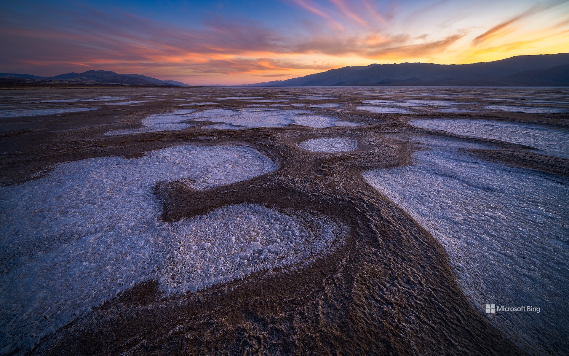 Die weiten Salzebenen des Badwater Basin im Death-Valley-Nationalpark in Kalifornien erstrecken sich über weite Entfernungen unter der heißen Wüstensonne. Dieser Ort liegt am tiefsten Punkt Nordamerikas, etwa 62 Meter unter dem Meeresspiegel. In dieser rauen Landschaft glänzt die verfestigte, mineralische Oberfläche wie ein Spiegel, während die sengende Hitze sie zum Flimmern bringt und Wellen in die Luft wirft. Unter der harten Kruste aus Natriumchlorid, Borax und weiteren Mineralien verbirgt sich eine tückische Schlammschicht. Wer sich über die Salzebenen hinaus auf einen Hügel wagt, hat von Dante's View aus auf fast 1.680 Metern Höhe einen atemberaubenden Panoramablick auf das Badwater Basin. Der Death-Valley-Nationalpark mit seinen surreal anmutenden Landschaften ist ein einzigartiges Erlebnis, in dem trotz extremer Bedingungen eine bizarre Schönheit gedeiht.