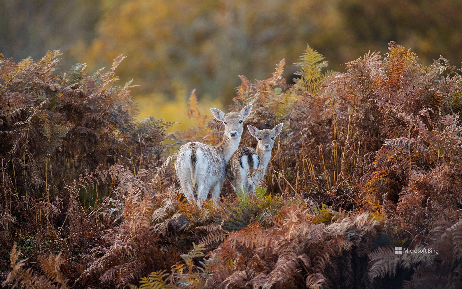 Damhirsche sind für ihr auffälliges Fell bekannt, das im Laufe der Jahreszeiten seine Farbe wechselt und im Sommer oft mit weißen Flecken versehen ist. Während der herbstlichen Brunft kämpfen die männlichen Tiere um die Vorherrschaft. Diese männlichen Hirsche sind an ihrem handförmigen Geweih zu erkennen, das eine breite, abgeflachte Oberfläche hat. Damhirsche sind in Teilen Asiens und Europa beheimatet und vor allem in Leicestershire (England) häufig anzutreffen, insbesondere im Bradgate Park. Dieser 850 Hektar große Park bietet nicht nur ein Refugium für diese Tiere, sondern auch wunderschöne Landschaften, Wälder und den Beacon Hill Tower, der einen Panoramablick über die Gegend bietet.