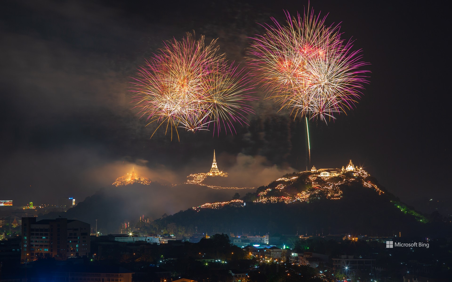 Es ist Zeit für den finalen Countdown! In vielen Ländern wird heute Abend Silvester gefeiert, um das alte Jahr zu verabschieden und das neue Jahr zu begrüßen. Die Silvester-Bräuche in einigen Ländern sind besonders kreativ. Hierzulande wird die Zukunft mit Bleigießen vorausgesagt, in Dänemark wird Geschirr zerschlagen, in Spanien werden die Münder mit Weintrauben gefüllt und in Griechenland werden Zwiebeln vor die Tür gehängt. Diejenigen, die in Thailand feiern, suchen ihr Glück in einem Tempel oder sehen sich das Feuerwerk an, das den heiligen Hügel im Geschichtspark Phra Nakhon Khiri, den Sie auf dem heutigen Foto sehen können, erleuchtet. Wo auch immer Sie feiern, rutschen Sie gut rein. Bis zum nächsten Jahr!
