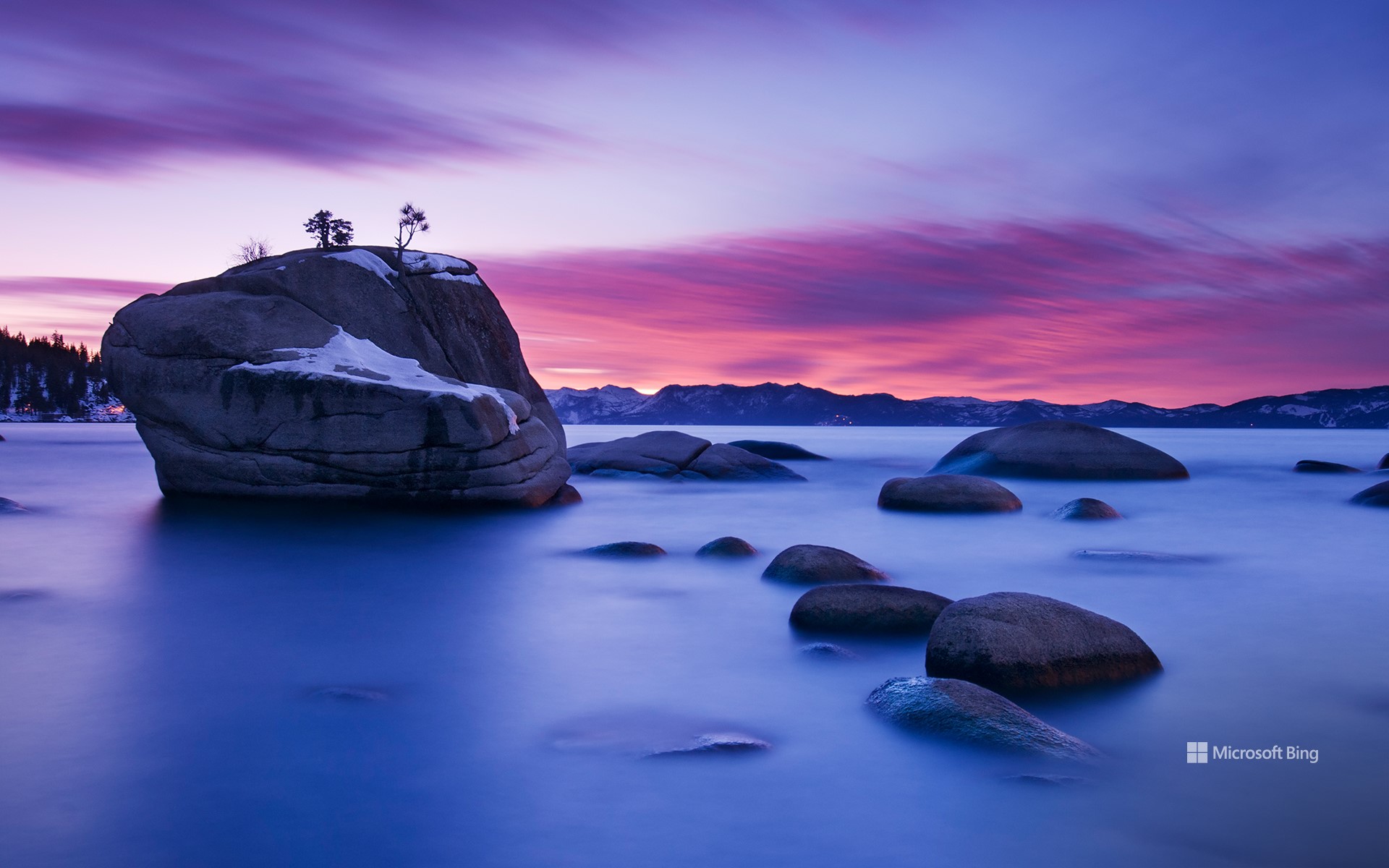 Haben Sie so etwas schon einmal gesehen? Der Bonsai Rock am Lake Tahoe, einem faszinierenden Süßwassersee in der Sierra Nevada in den USA, erstreckt sich über die Grenzen von Nevada und Kalifornien. Die etwas ungewöhnliche Erscheinung von vier Bäumen, die scheinbar aus einem massiven Granitfelsen wachsen, verleiht dem Ort seinen Namen, der sich von der japanischen Kunst der Bonsai-Baumzucht ableitet. Bonsai bestehen traditionell aus einem einzelnen Baum oder einer kleinen Gruppe von Bäumen derselben Art, so dass die Beschreibung gut auf diesen Ort passt. Ein wesentlicher Zweck von Bonsai besteht darin, eine Gelegenheit zur Kontemplation zu schaffen. Wenn Sie also den Bonsai Rock besuchen, suchen Sie sich einen Ort, an dem Sie sich entspannen und Ihren Gedanken nachhängen können.