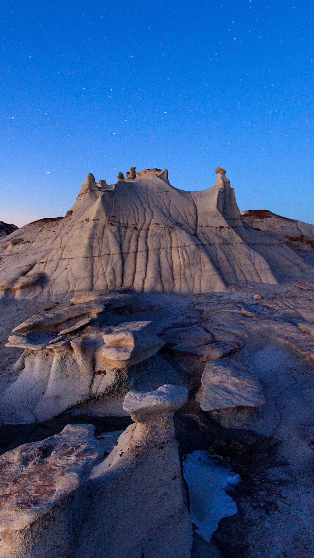 Die Zeit verwandelt unaufhörlich das Universum, die Galaxien, die Welt und uns selbst unaufhörlich. So war zum Beispiel dieses Ödland in New Mexico, USA - die Bisti/De-Na-Zin Wilderness - einst ein üppiger tropischer Regenwald. Vor fast 70 Millionen Jahren gab es hier keine gewundenen Landschaften und hohen Türme, sondern eine Vielzahl von Dinosauriern aus der späten Kreidezeit, darunter gepanzerte Ankylosaurier, Hadrosaurier mit Entenschnäbeln und mächtige Tyrannosaurier. Heute ist das Gebiet voll von Wundern anderer Art, mit Felsformationen, die eher an Skulpturen als an natürliche Phänomene erinnern. Dieses Gebiet ist die Heimat der Navajo- und Pueblo-Völker. Der Name stammt aus der Navajo-Sprache. Bisti bedeutet „ein großes Gebiet von Schieferhügeln“, während De-Na-Zin „Kranich“ bedeutet und sich auf die nahegelegenen Felszeichnungen eines „stehenden Kranichs“ bezieht.