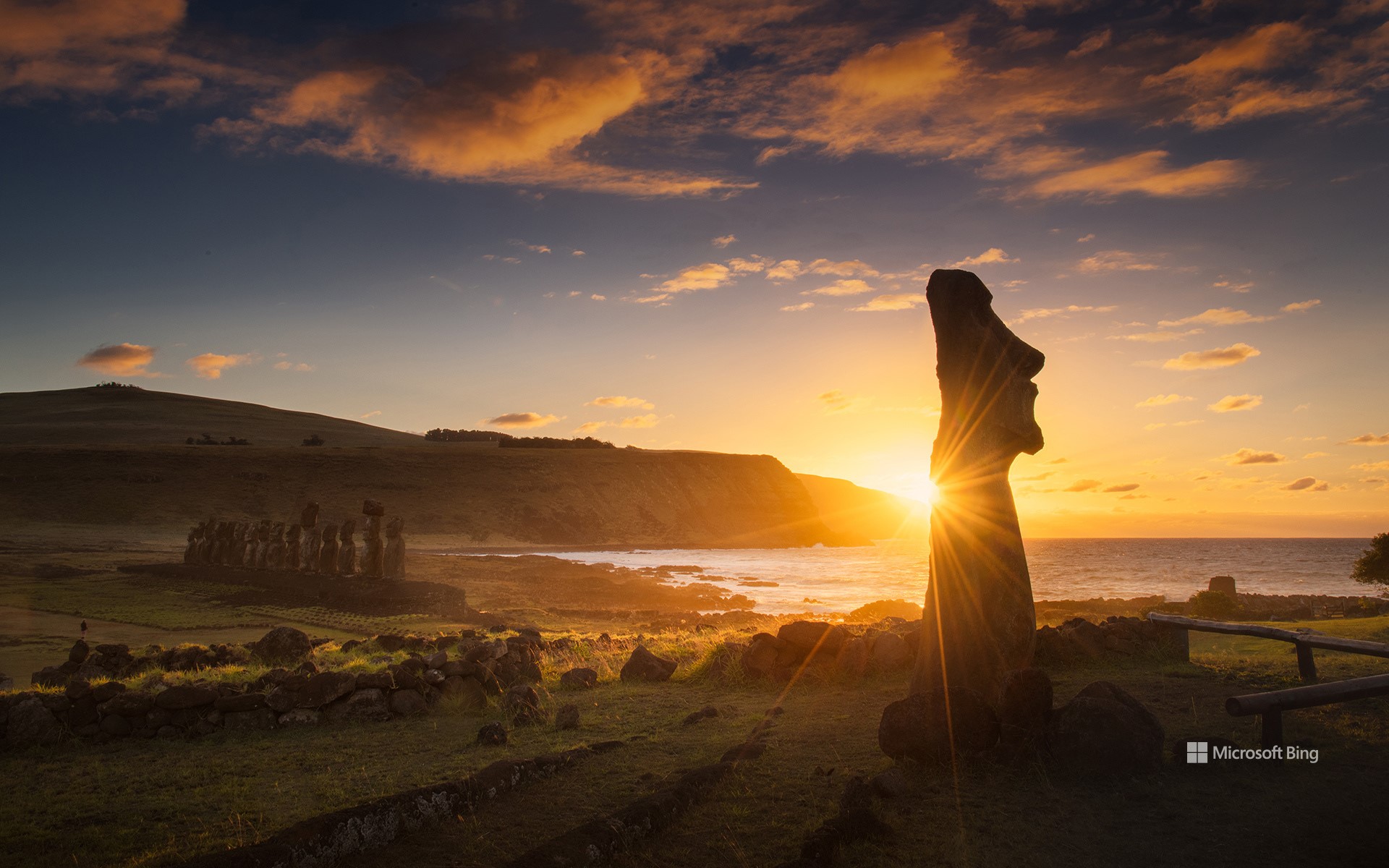 Sonnenaufgang am Ahu Tongariki, Nationalpark Rapa Nui, Osterinsel, Chile (© Piriya Photography/Getty Images)