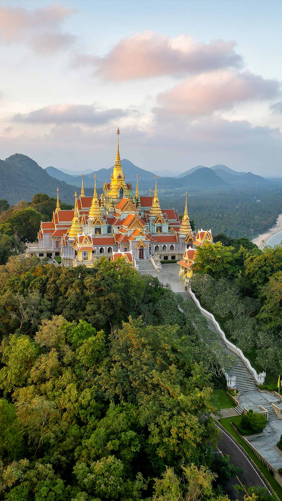 Wer es etwas ruhiger mag, sollte den Wat Tang Sai Tempel auf dem Thong Chai Berg besuchen. Hier wacht eine 13,5 Meter hohe Buddhastatue über Pagoden im klassischen Stil. Der Tempel wurde 1996 zu Ehren von König Bhumibol Adulyadej erbaut und ist eine Oase des Friedens, ideal, um das Panorama der Küste zu genießen, umgeben vom Gesang der Mantras und der Stille des Herzens.