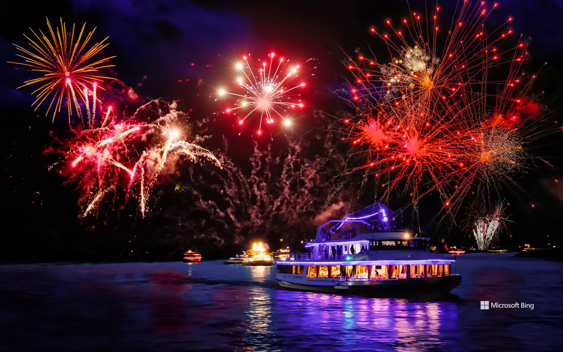 Romantisch und faszinierend – treffender lässt sich die Veranstaltung „Rhein in Flammen“ kaum beschreiben. Jedes Jahr zwischen Mai und September verwandelt sich der Rhein an mehreren Orten in ein spektakuläres Lichtermeer. Entlang des Mittelrheins – etwa bei Bonn, Rüdesheim oder Koblenz – erleben Besucherinnen und Besucher farbenprächtige Feuerwerke, festlich beleuchtete Schiffe und stimmungsvolle Uferfeste, wie auf unserem heutigen Bild zu sehen ist. Die erstmals 1936 gefeierte Veranstaltung hat sich zu einem beliebten Sommerereignis mit überregionaler Strahlkraft entwickelt und zieht jährlich Zehntausende an.