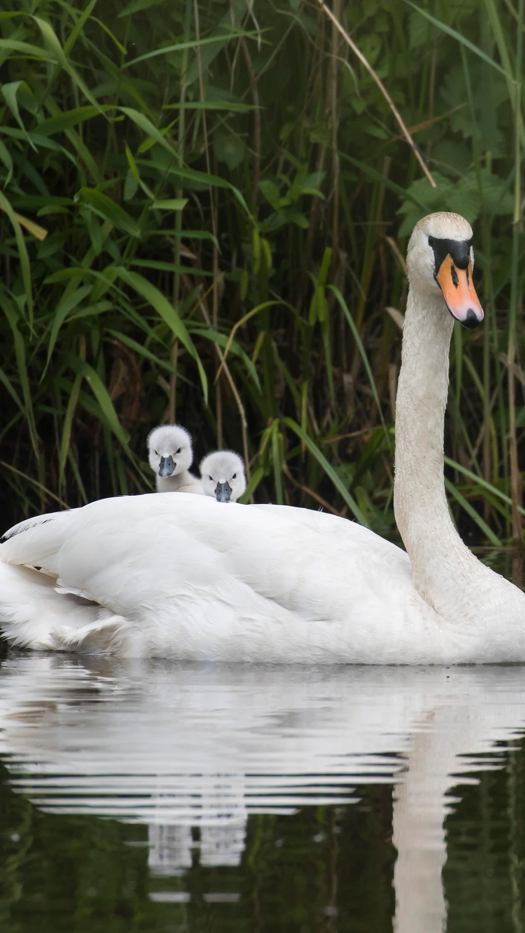 Sanft gleitet ein Höckerschwan mit seinen Küken über die ruhige Wasseroberfläche. Diese Szene lässt sich an vielen Seen und Flusslandschaften beobachten – vom Bodensee über die Mecklenburgische Seenplatte bis hin zu renaturierten Flussarmen in zahlreichen Städten. Höckerschwäne finden dort geschützte Uferzonen und reichlich Wasserpflanzen, die ihre wichtigste Nahrungsquelle bilden.