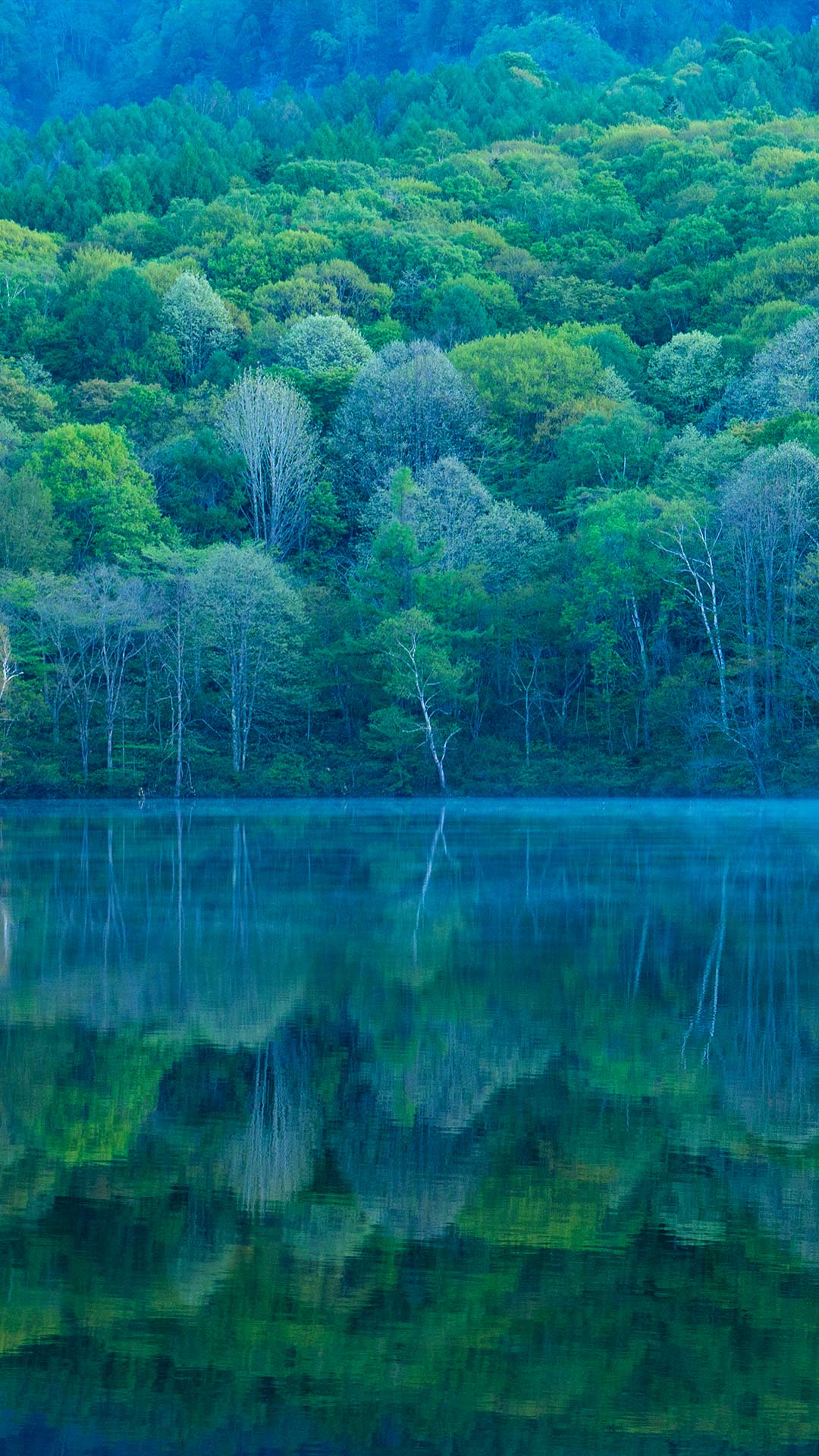 The enchanting Kagami-ike—meaning 'mirror pond'—is nestled amidst the beauty of Nagano, Japan. The serene surroundings are perfectly reflected in the still waters of this artificial reservoir. Surrounded by lush greenery and the Togakushi Mountain Range, Kagami-ike creates a captivating symphony of colours throughout the seasons. Every morning, as the mist gently disappears, the lake showcases its charm. Visiting this secluded place during the cherry blossom season is ideal, as the sakura petals float along with the breeze. Kagami-ike is also known for its autumn foliage, as the trees are covered in vivid shades of orange and yellow. The reservoir's peaceful surroundings are a wonderful place for mindful meditation.