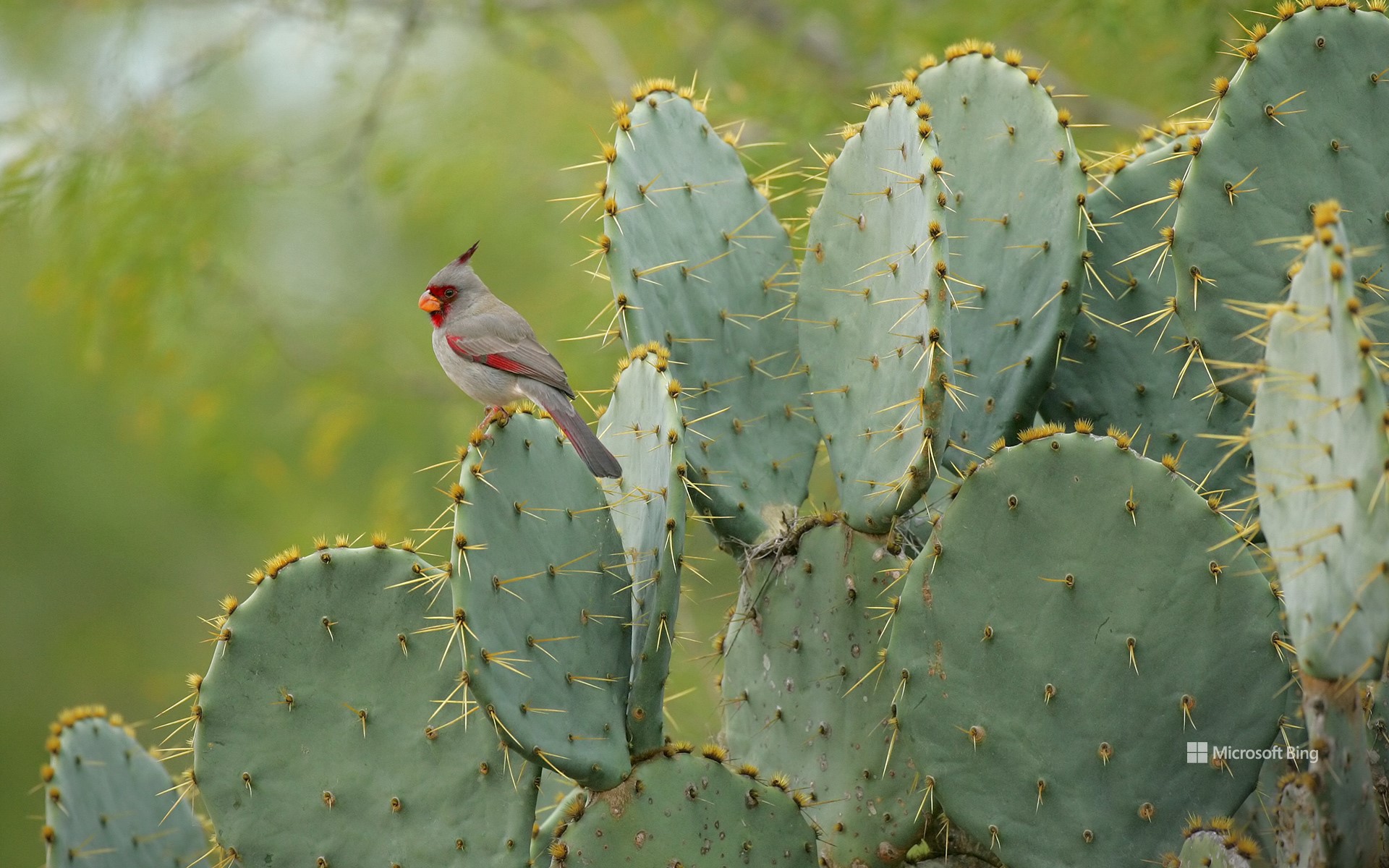 In today's image is a pyrrhuloxia—also known as the desert cardinal—a songbird that lives in the deserts of northern Mexico and the American Southwest. Great Backyard Bird Count participants in these areas might be lucky enough to see one of these red and grey birds; they often visit backyards in search of seeds or to eat the fruit from shrubs and cacti.