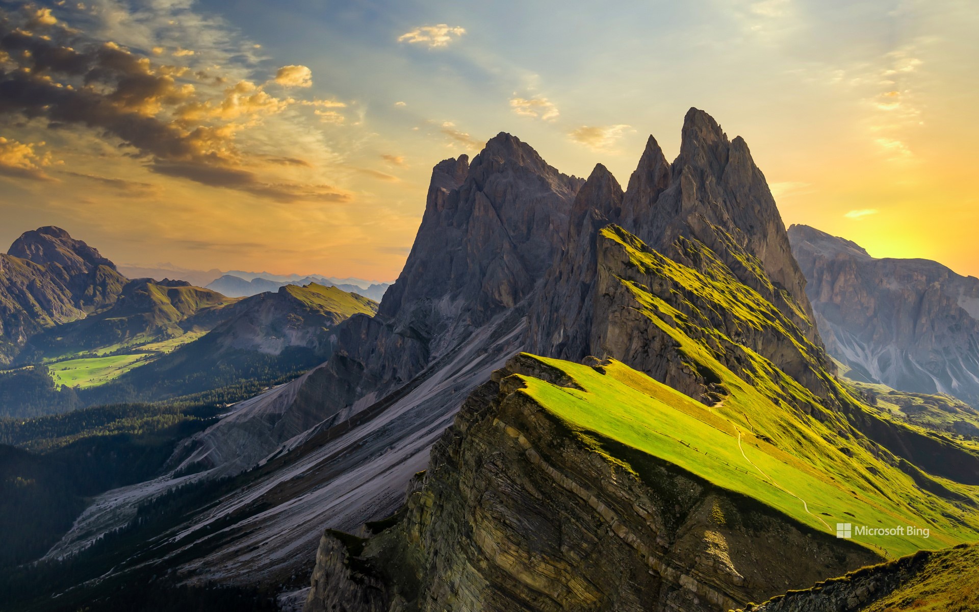 Italy's Dolomites don't just tower; they enchant, turning every trail into a story. Fondly known as the 'Pale Mountains,' the Dolomites derive their name from dolomite—a carbonate mineral. Set in the northern Italian Alps, the range spans over 1,200 square kilometres and boasts 18 soaring peaks that rise above 2,500 metres. These mountains feature sheer cliffs, lofty walls and a maze of narrow, winding valleys. Amid the dramatic landscape of the Dolomites lies one of its most spectacular peaks, Seceda, featured in today's image. With a height of over 2,000 metres, it offers the highest panoramic viewpoint in Val Gardena, a scenic valley in the province of South Tyrol.