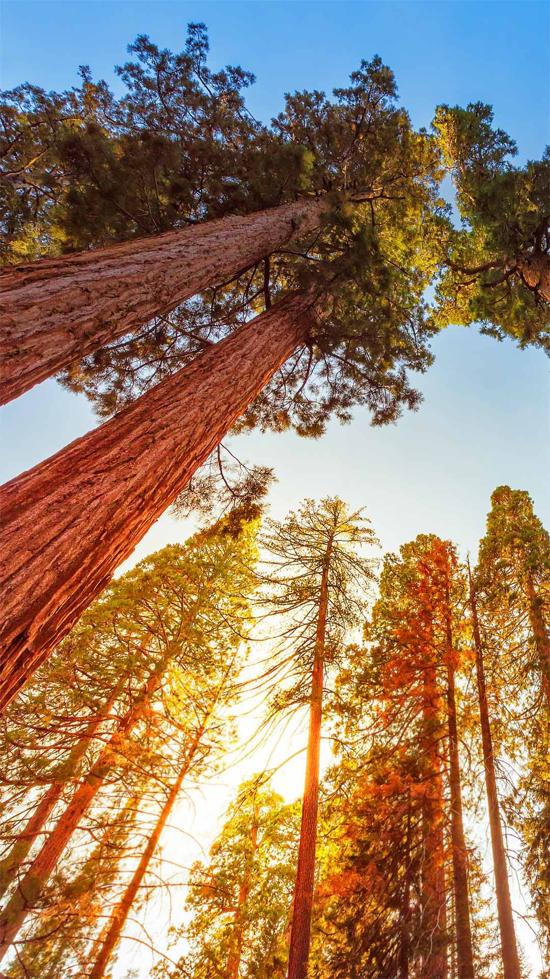 We're looking at sequoia trees in Sequoia and Kings Canyon National Parks, California—the two parks border each other in the Sierra Nevada range in Central California. These giant sequoias can grow nearly 300 feet tall and some specimens have lived more than 3,000 years. Their longevity—even in areas prone to wildfires—is helped by thick bark that's full of fire-resistant tannins.