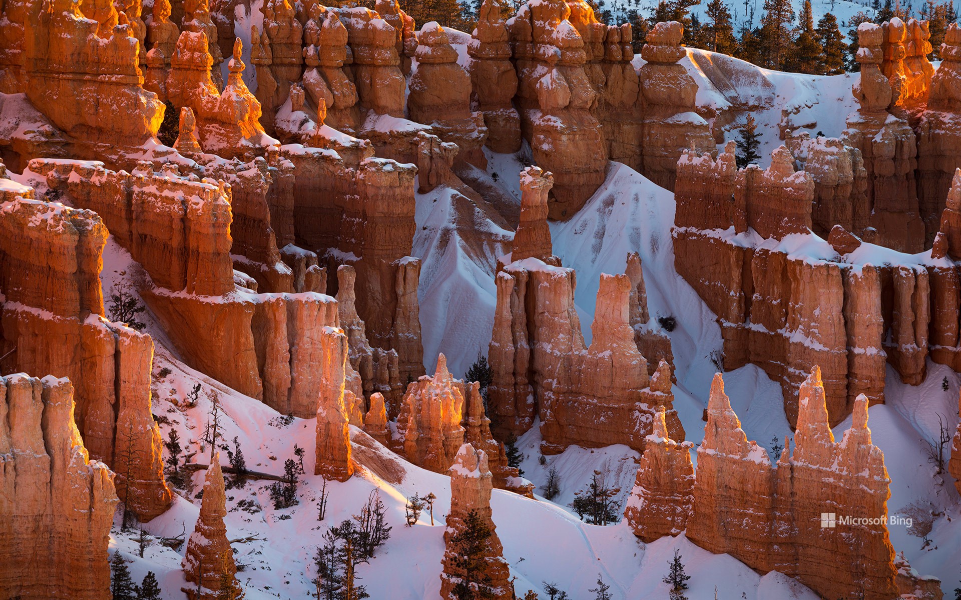 These fascinating red hoodoos of Bryce Canyon National Park in Utah are best explored on foot! The park's hiking trails guide you among the world's largest collection of hoodoos, which are rock spires formed by erosion. The horseshoe-shaped natural amphitheaters create a surreal landscape that changes with the play of sunlight. The area was initially inhabited by Native American tribes, including the Paiute people. Although there is no evidence of them having lived there permanently, Paiute Indians used the Paunsaugunt Plateau for seasonal hunting and gathering. Designated a national park in 1928, Bryce Canyon is dotted with several viewpoints like Inspiration Point, Yovimpa Point, and Rainbow Point, which offer panoramic vistas of the surrounding topography.
