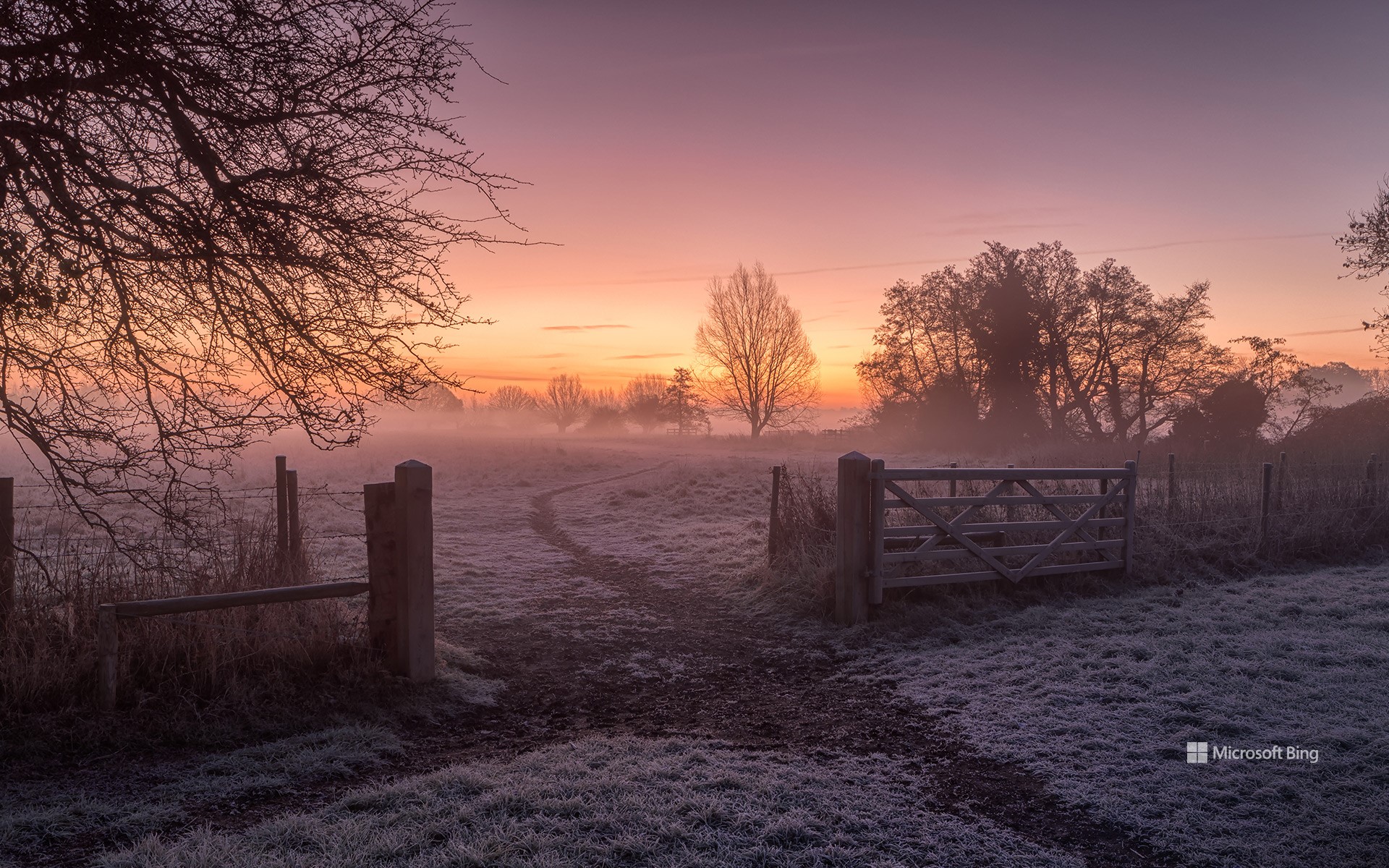 Amanecer de invierno en Dedham, Colchester, Inglaterra