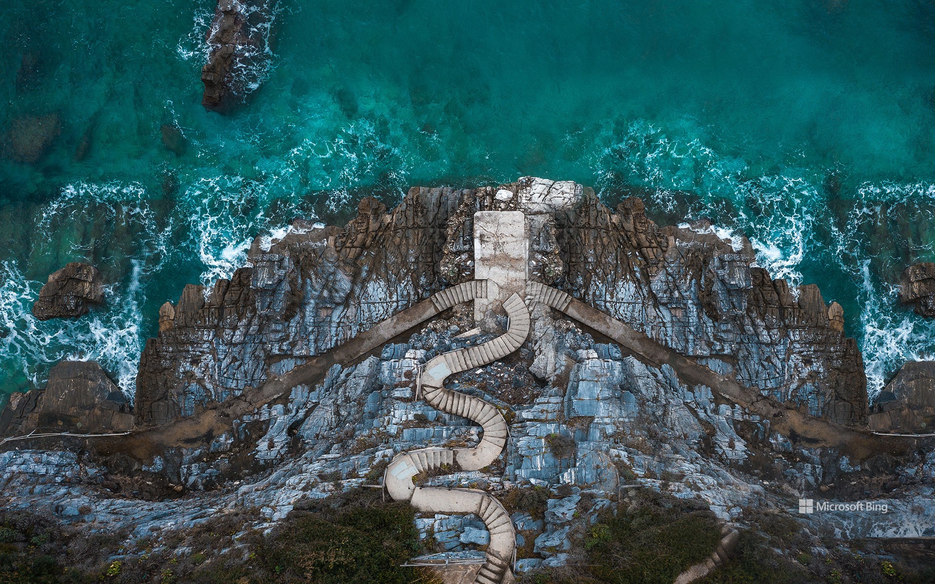 Escaleras en la costa de Mylopotamos, Tesalia, Grecia