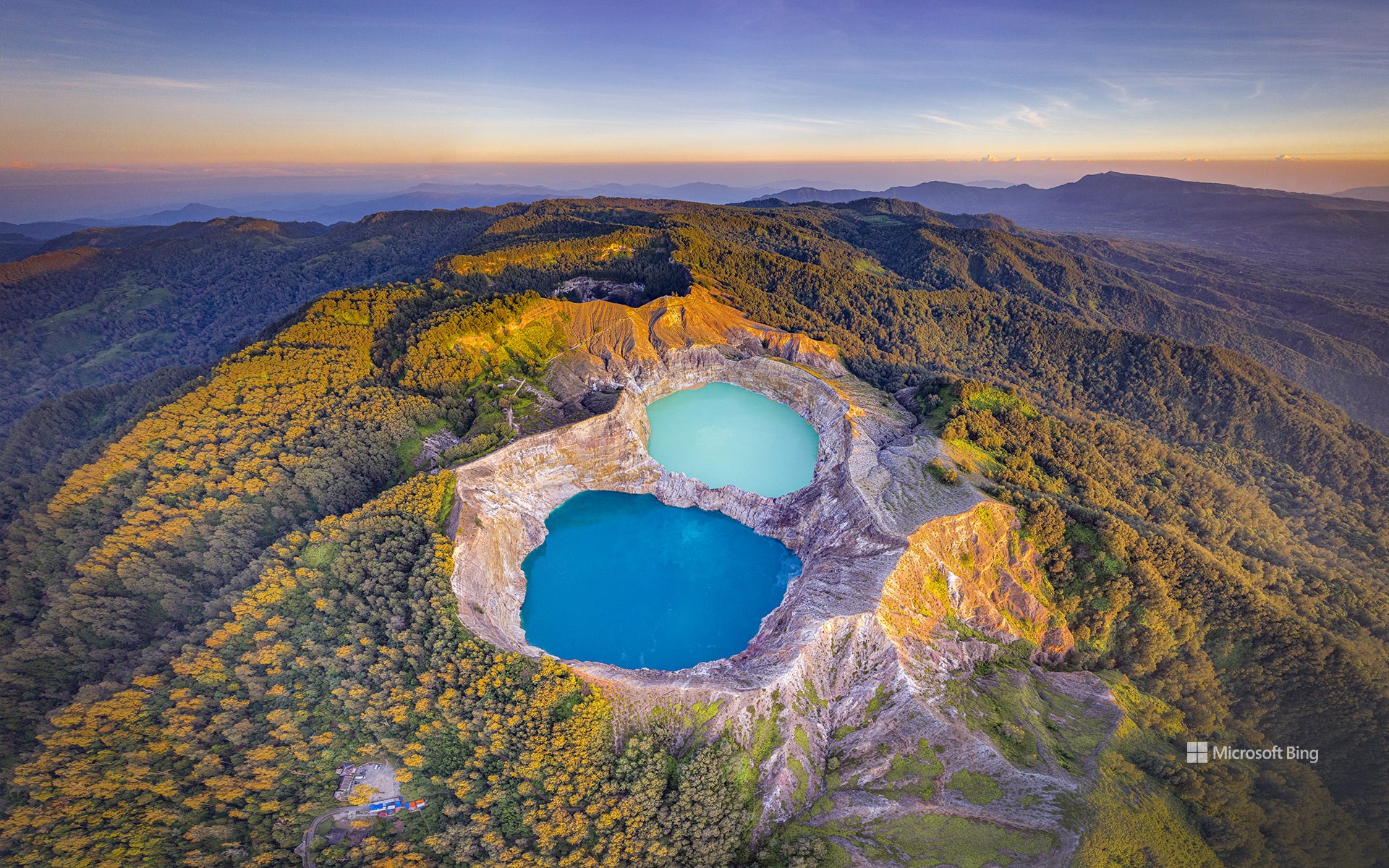 三色の火口湖を持つ火山