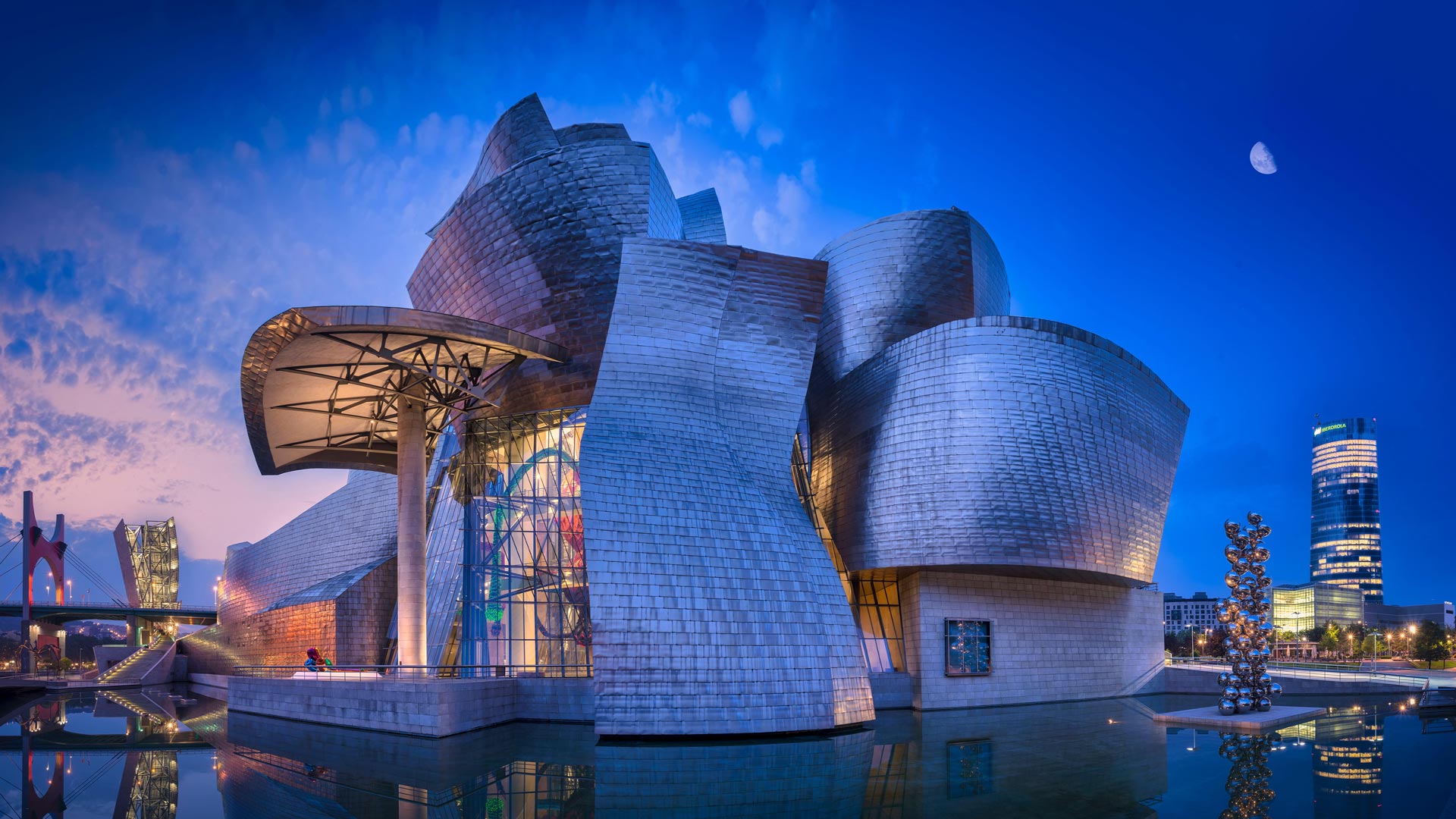 Anochecer en el Museo Guggenheim, Bilbao, País Vasco (© Dleiva/Alamy Stock Foto)