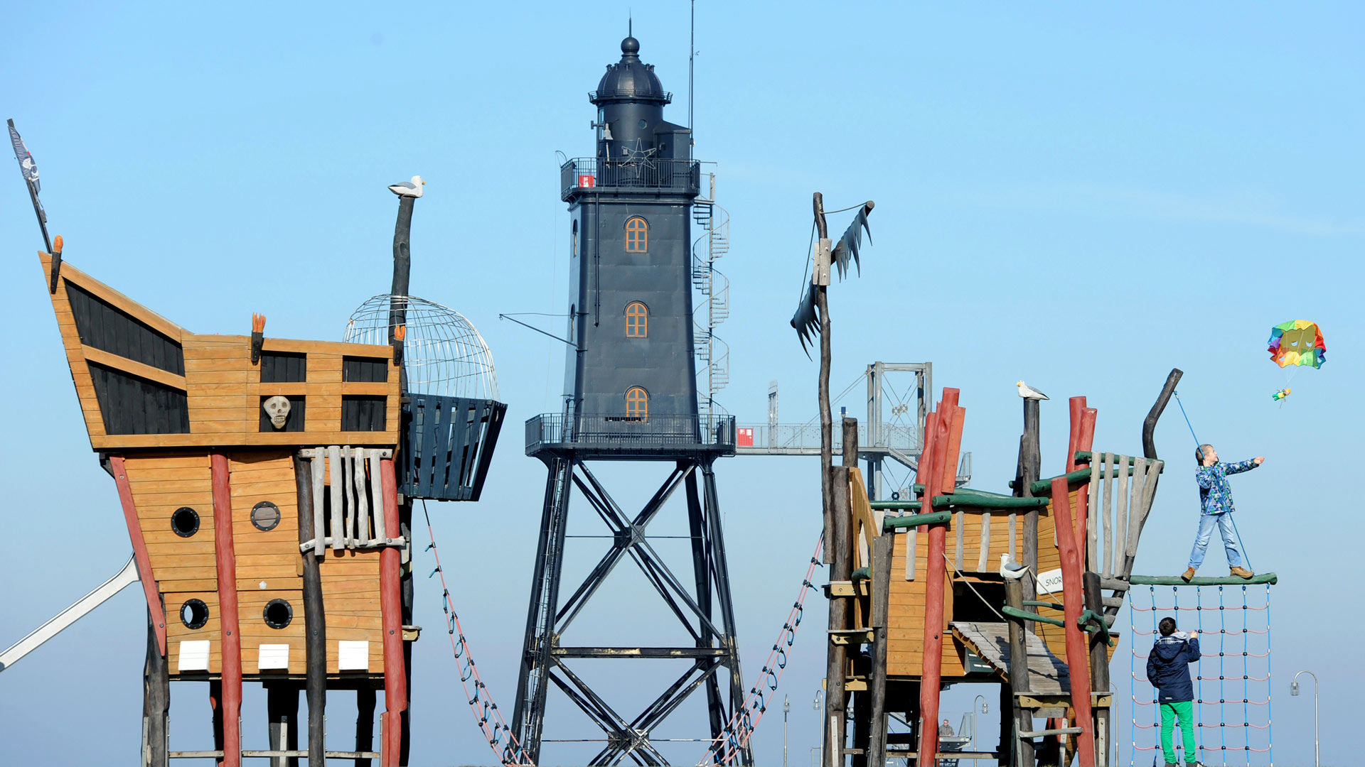 Parque infantil en el faro de Obereversand en Dorum-Neufeld, Alemania (© INGO WAGNER/DPA/AFP via Getty Images)