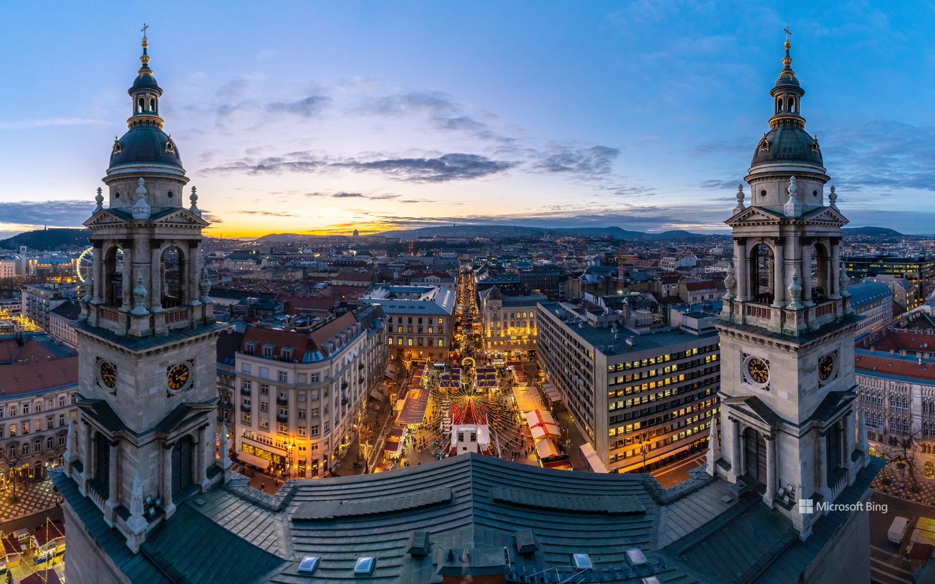 Mercado navideño, Basílica de San Esteban, Budapest, Hungría (© Calin Stan/Shutterstock)