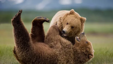 El oso pardo es uno de los grandes símbolos de la naturaleza salvaje. En Alaska (Estados Unidos), especialmente en el Parque Nacional y Reserva Katmai, es común ver a estos imponentes animales en libertad. Los más jóvenes suelen “jugar a pelear” para ganar fuerza, aprender habilidades de supervivencia y estrechar lazos con otros osos. A pesar de su tamaño —pueden llegar a pesar más de 400 kilos—, corren a más de 55 km/h, superando con facilidad a cualquier persona.