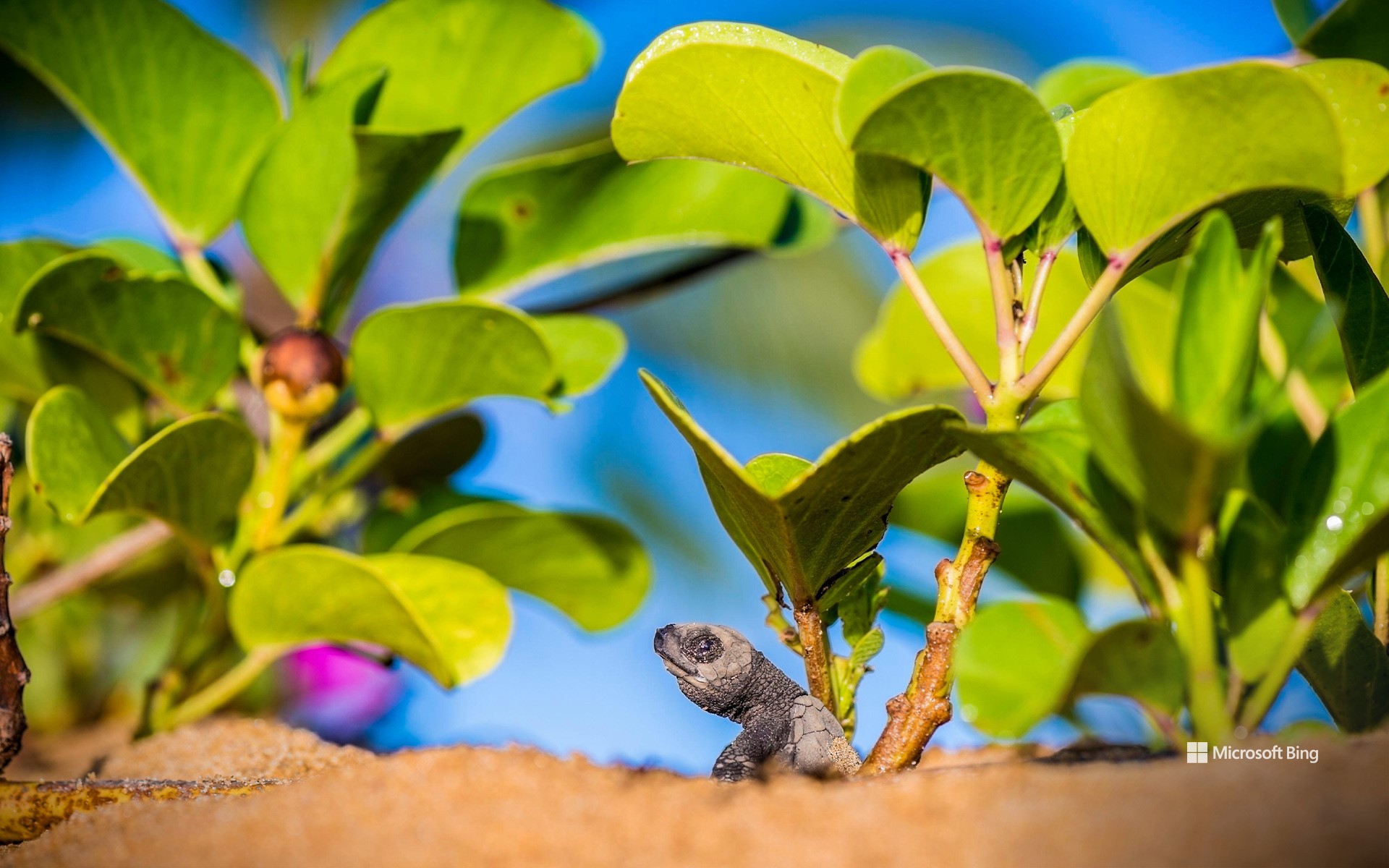 Bébé tortue olivâtre quittant le nid pour rejoindre l'océan, plage de Remire-Montjoly, Cayenne, Guyanne (© Brusini Aurélien/hemis.fr)