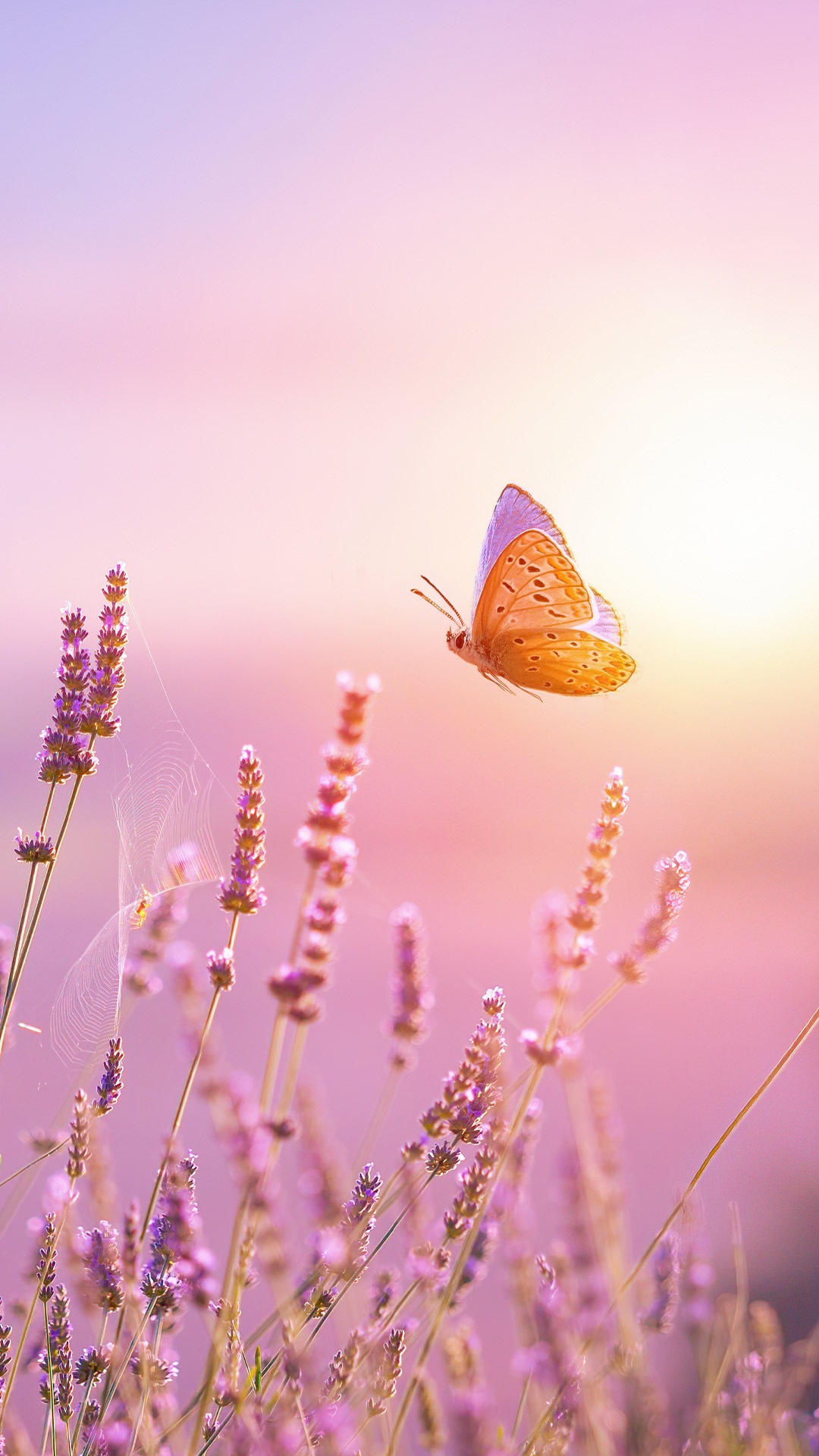 Papillon et fleur de lavande au lever du soleil, France (© Konstanttin/Getty Images)