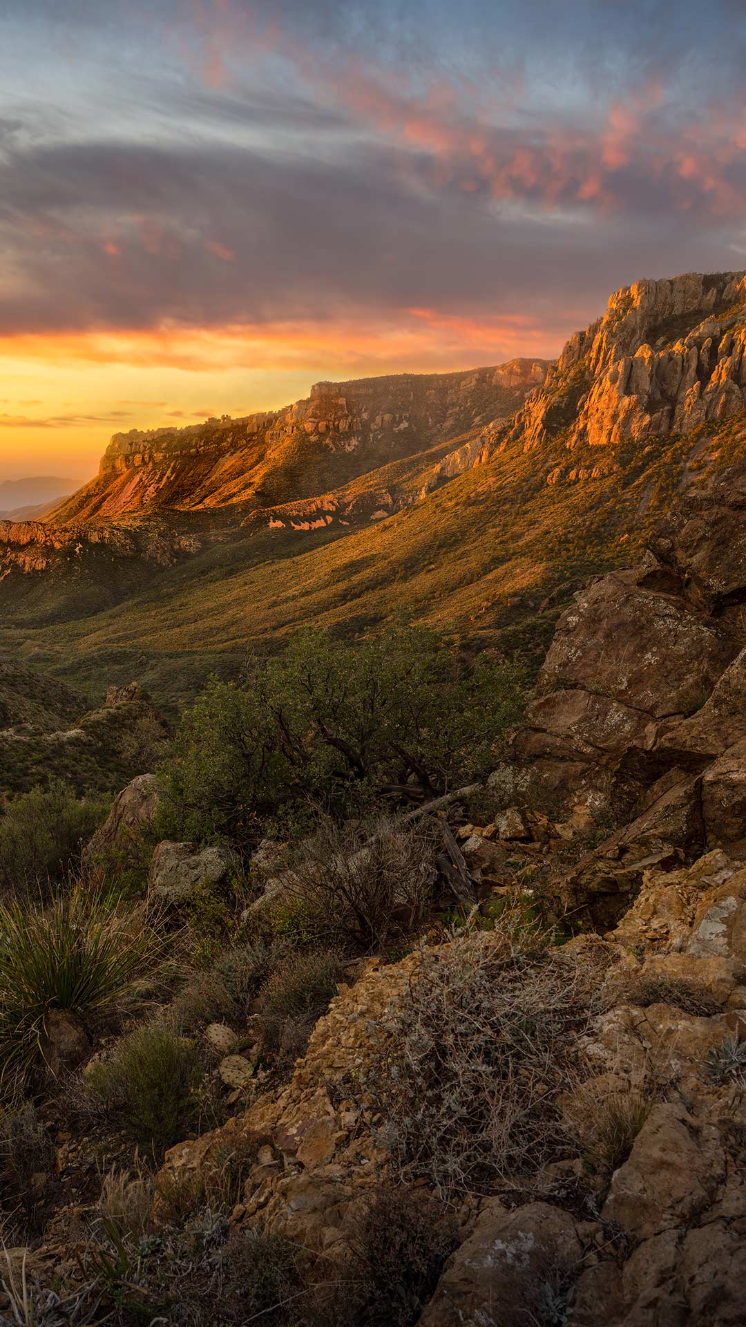 Le parc abrite trois écosystèmes spectaculaires : le désert du Chihuahua, le Rio Grande sinueux et les montagnes Chisos, théâtre de panoramas grandioses comme celui-ci. On y croise pumas, colibris, serpents, ou même un roadrunner filant entre les yuccas. Les vestiges de civilisations anciennes comme les pétroglyphes, ruines, sentiers, témoignent d’un passé bien antérieur à la frontière actuelle.
