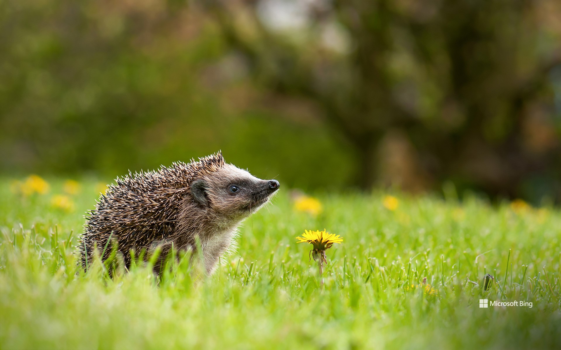 Riccio europeo tra i denti di leone