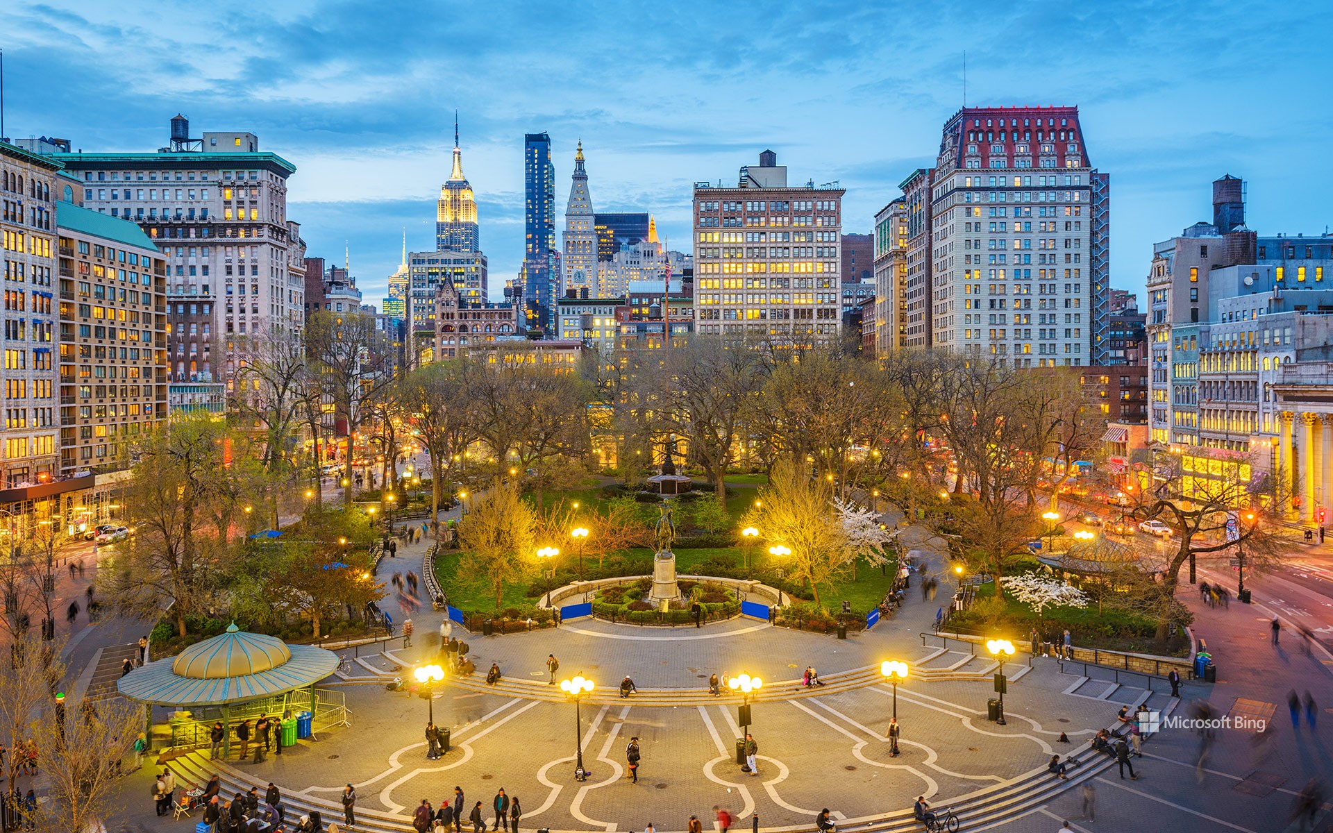 "Queste strade ti faranno sentire nuovo di zecca, le grandi luci ti ispireranno" Alicia Keys sa davvero come ravvivare la vibrante e movimentata vita della Grande Mela. L'immagine di oggi mostra un punto della città che non dorme mai: Union Square, nel cuore di Lower Manhattan a New York, USA. In questo incrocio storico, è possibile ammirare le statue di George Washington e di Abraham Lincoln, opere dello scultore Henry Kirke Brown. Nel 1882, i lavoratori esercitarono i loro diritti alla libertà di parola e di riunione, organizzando la prima parata del Labor Day proprio qui a Union Square. Nel 1997, la piazza ha ottenuto il riconoscimento come monumento di importanza nazionale per il suo significato nella storia del lavoro. Oggi, è un luogo vivace dove è frequente incontrare artisti di strada, musicisti, skater, gruppi di danza e venditori ambulanti, che danno vita alla piazza.