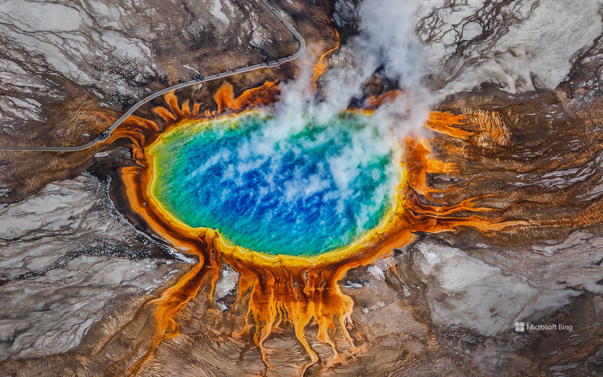 In occasione della "Giornata della Terra", facciamo un viaggio verso una delle più straordinarie manifestazioni di potenza geotermica della natura: la Grand Prismatic Spring, nel Parco Nazionale di Yellowstone, in Wyoming. Con i suoi 113 metri di diametro e una temperatura dell'acqua che raggiunge i 71 °C, è la più grande sorgente termale degli Stati Uniti. Questo meraviglioso fenomeno geotermico è alimentato dal calore immenso del grande vulcano di Yellowstone, che si trova sotto la sua superficie. I suoi vividi anelli di blu, verde, giallo e arancione sono creati da microrganismi termofili, che prosperano nelle acque ricche di minerali.