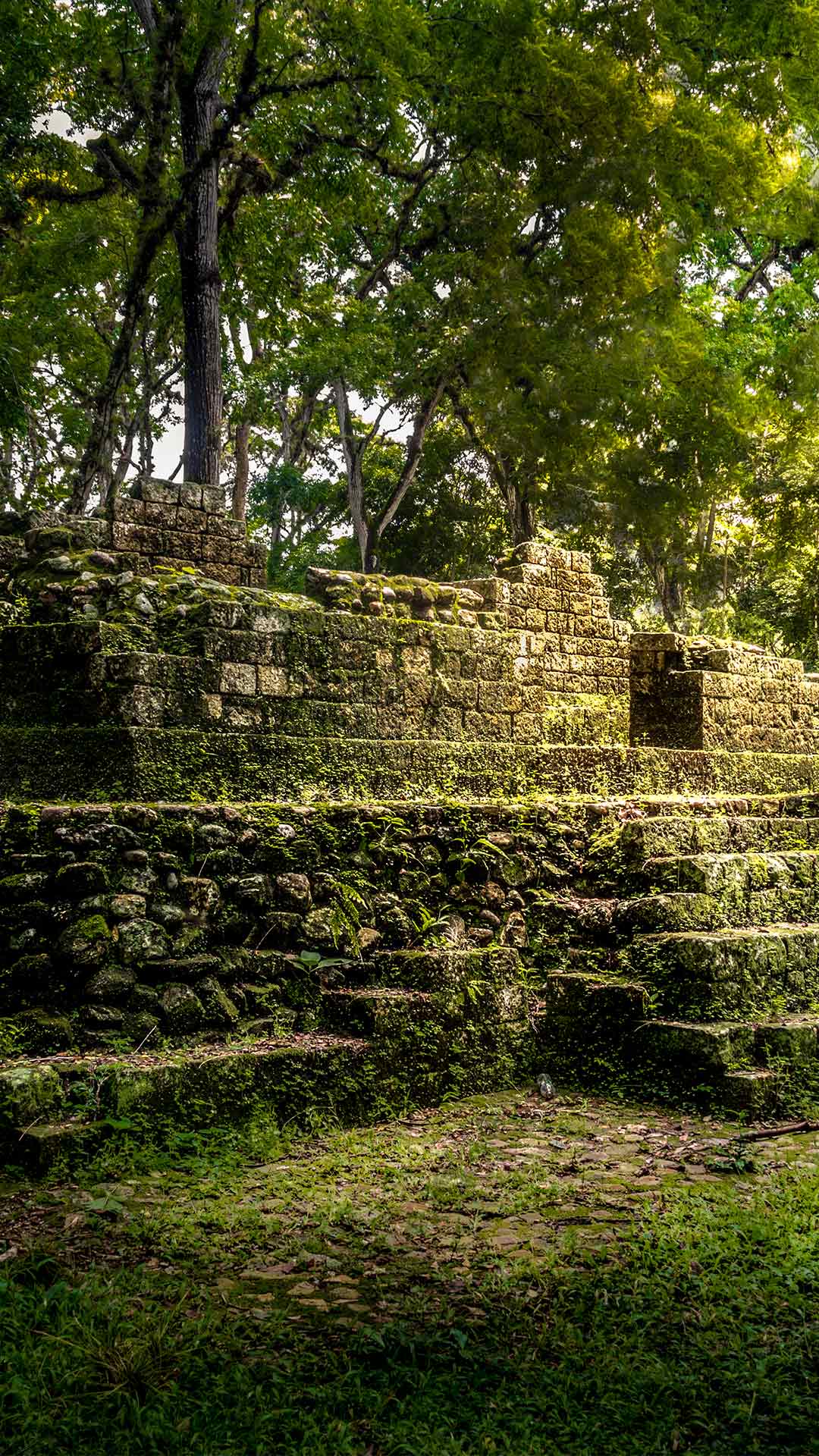 Passeggiando tra le rovine, due monumenti raccontano ancora oggi la grandezza della città. La Scalinata Geroglifica, con i suoi 63 gradini incisi da oltre 2.000 glifi, custodisce la più lunga iscrizione Maya mai rinvenuta: un fiume di segni che narra regni, cerimonie e ambizioni. Accanto, l’Altare Q trasforma la storia in scultura, raffigurando i 16 sovrani della dinastia uno dopo l’altro, come se ancora vegliassero sulla città.