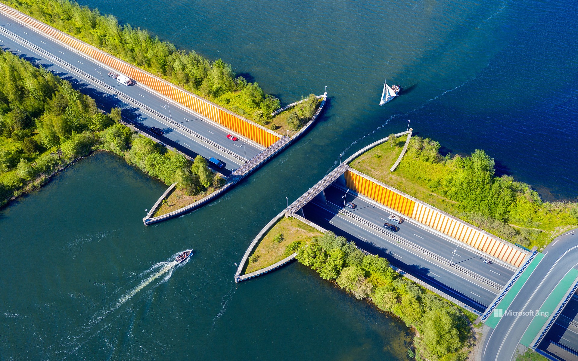 車でこの橋を通ると、トンネルの中にいるような感覚で、水の下を通っているという実感は、ほぼありません。しかし、上空から見ると、その奇妙な構造がよく分かります。フェールウェメール送水路は、その優れた設計と機能性、そして美しい景観によって注目を浴びており、訪れる人々に魅力的な体験を提供しています。