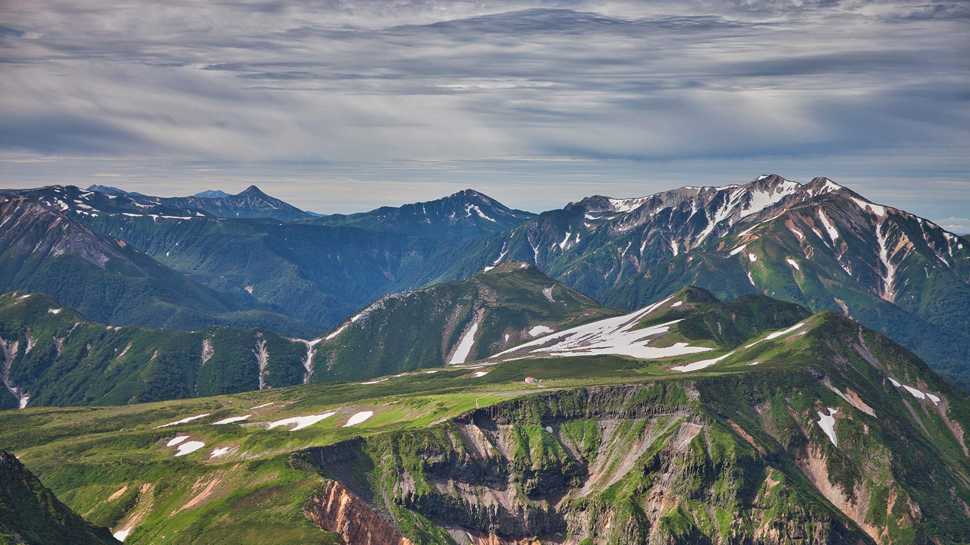 画像で見られるのは立山、飛騨山脈北部にある標高 3015m の山です。その美しい山容と雄大な景色から日本三名山に選定されています。また立山は、日本三大霊山の一つでもあり、主峰の雄山は極楽浄土の象徴とされ、古くから山岳信仰の対象となってきました。