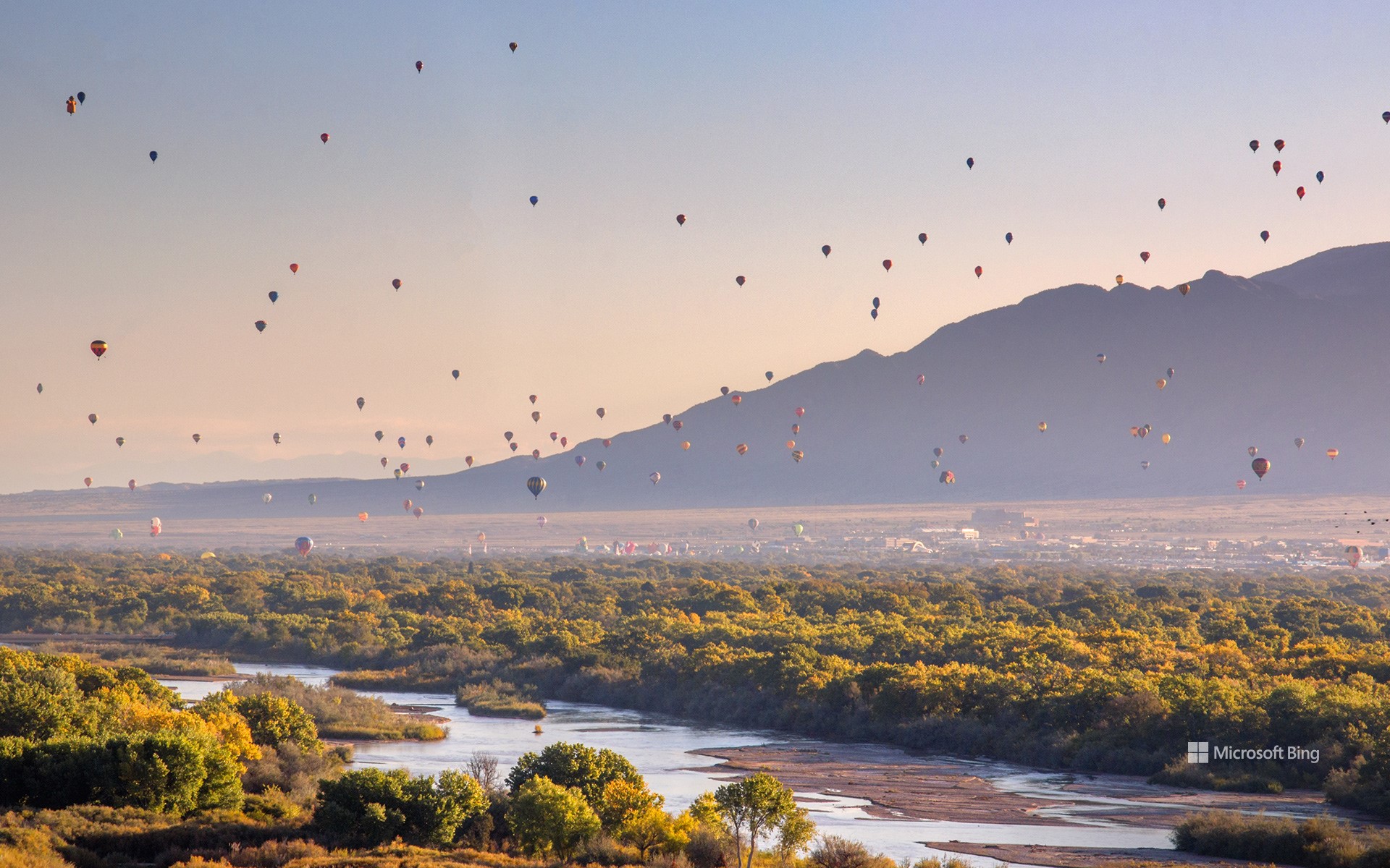 そして、画像はアルバカーキ国際気球祭の風景。米国のニューメキシコ州アルバカーキで、毎年 10 月に 9 日間にわたって開催される世界最大の気球祭りです。数百個のカラフルな気球が一斉に空に上がる様子を見るために多くの観光客が訪れます。