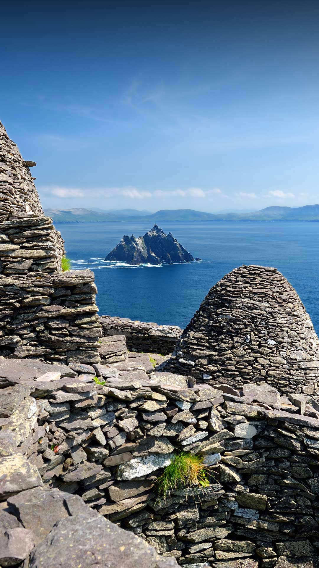 シュケリッグ・ヴィヒルはアイルランド南西部の沖合に浮かぶ孤島で、6 世紀に建てられた石造りの修道院が有名です。その歴史と保存状態の良さからユネスコの世界遺産に登録されています。「スター・ウォーズ」ではジェダイ・マスターのルーク・スカイウォーカーが晩年に隠れ住んでいた島という設定で登場しました。