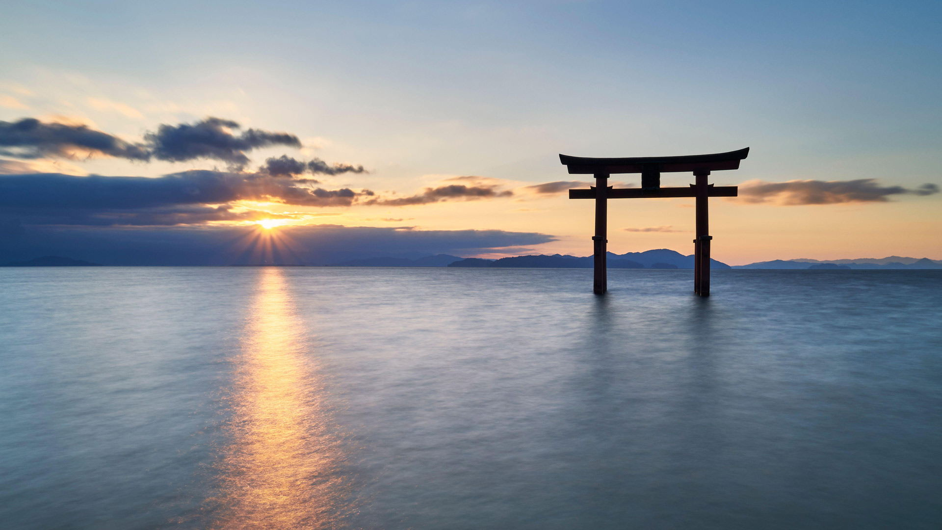 朝日と白髭神社の鳥居, 滋賀県 高島市 (© Cavan Images/Alamy Stock Photo)