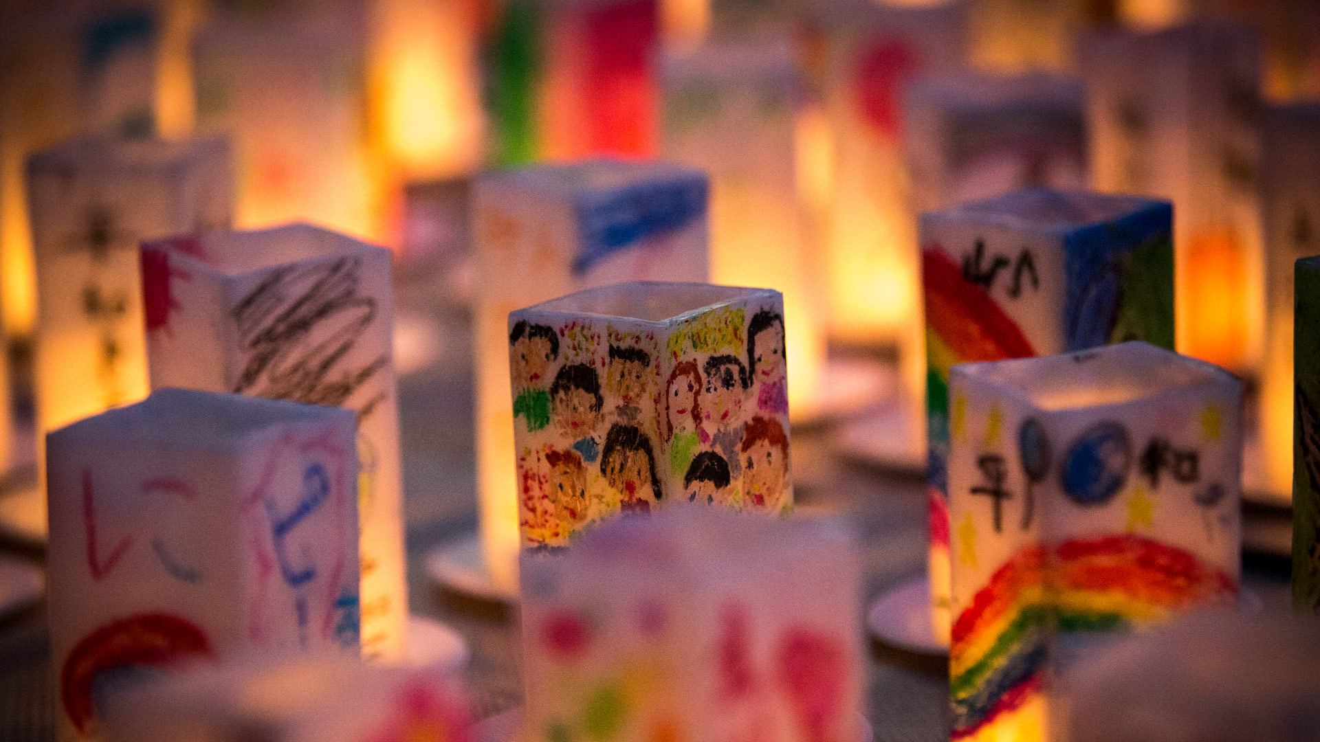 画像は、もう一つの被爆都市・長崎の平和公園で撮影されたもので、子どもたちが平和への祈りを込めて作った「ピースキャンドル」です。今日、広島でも、原爆死没者の慰霊を行うと共に、平和への祈りを込めた「ピースメッセージとうろう流し」が行われます。