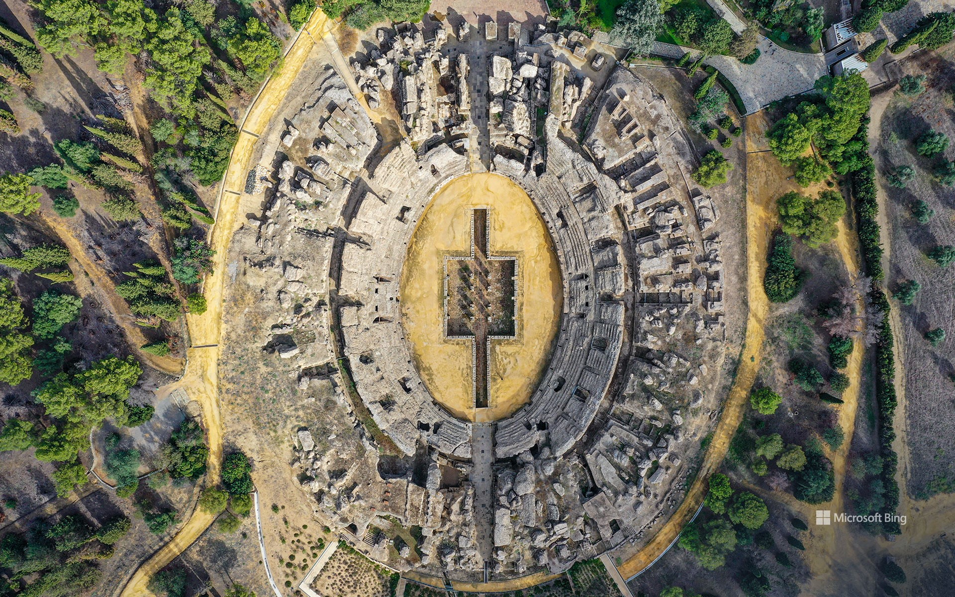 As ruínas de Italica são os restos do que já foi um próspero centro urbano. Sua característica mais emblemática é o anfiteatro, visto na imagem de hoje. Um dos maiores do Império Romano, ele comportava até 25.000 espectadores, mais do que o dobro da população da cidade. Ademais, há vestígios de impressionantes edifícios públicos, um templo construído em homenagem a Trajano, banhos termais e vilas decoradas com impressionantes mosaicos. Italica é uma joia arqueológica preservada no tempo, oferecendo um vislumbre da grandeza do Império Romano.