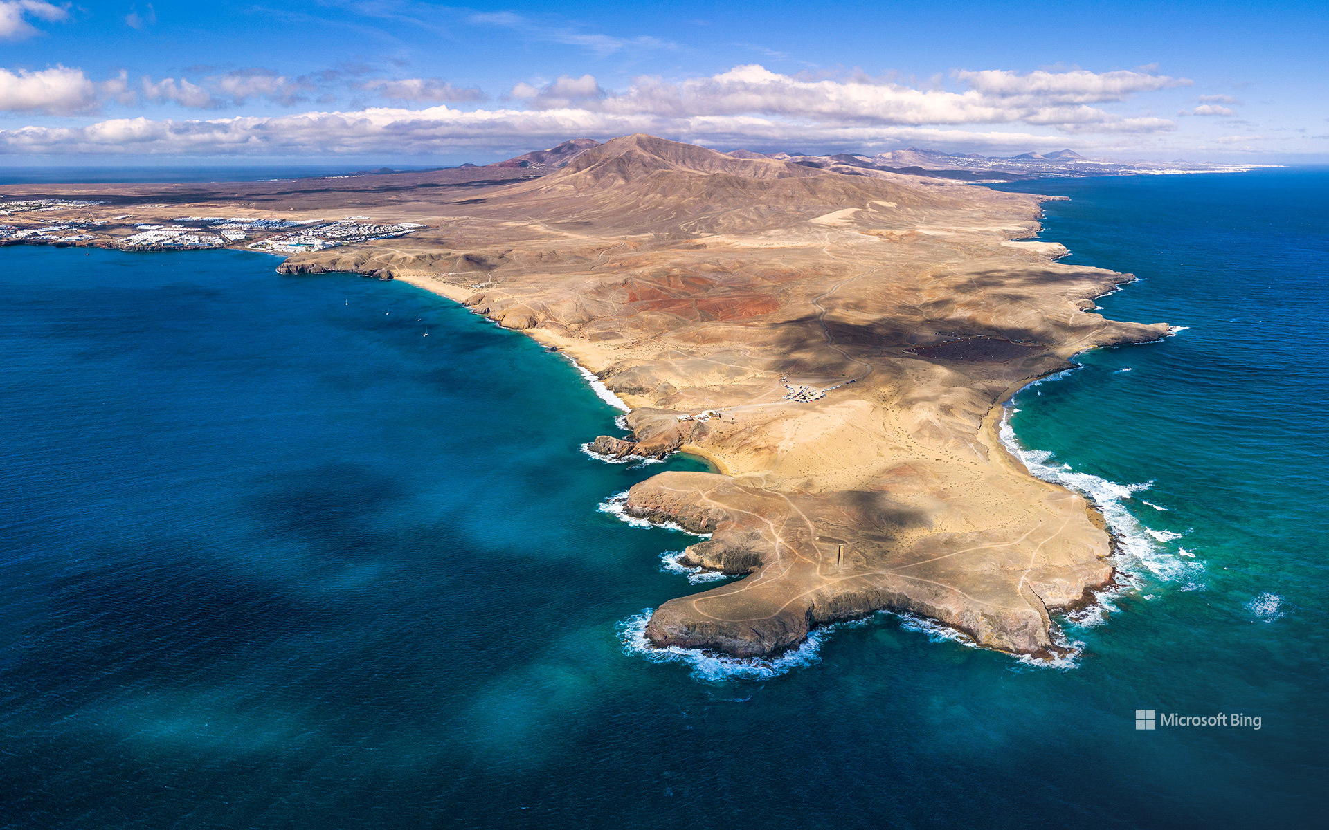 Se praias tivessem currículos, a do Papagaio teria doutorado em geologia criativa. Em Lanzarote, uma das ilhas espanholas das Canárias, o recanto que vemos na imagem de hoje nasceu de erupções submarinas que empurraram basalto e cinzas para fora do mar. O Atlântico, com paciência milenar, escavou, alisou e tingiu tudo em tons que vão do dourado ao quase preto.