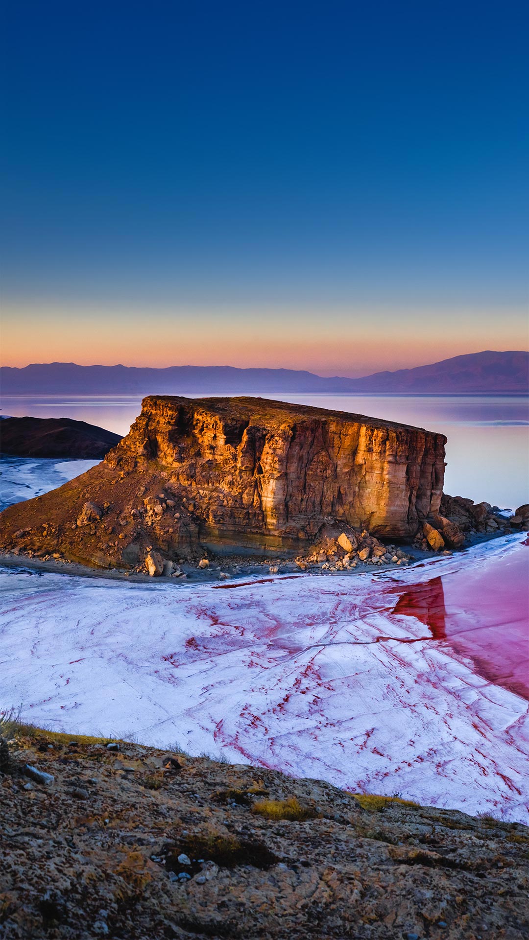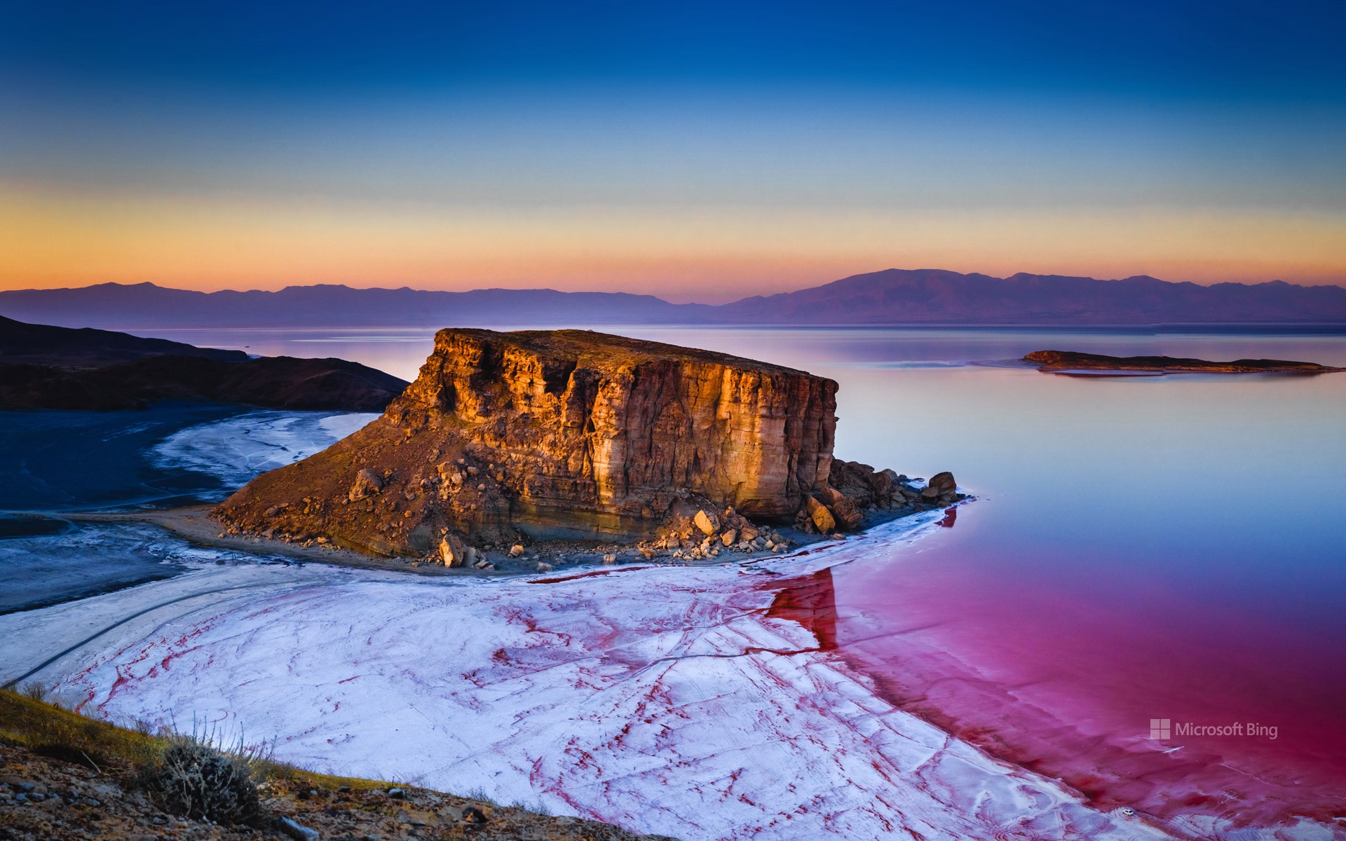 乌鲁米耶湖中的岩层,伊朗