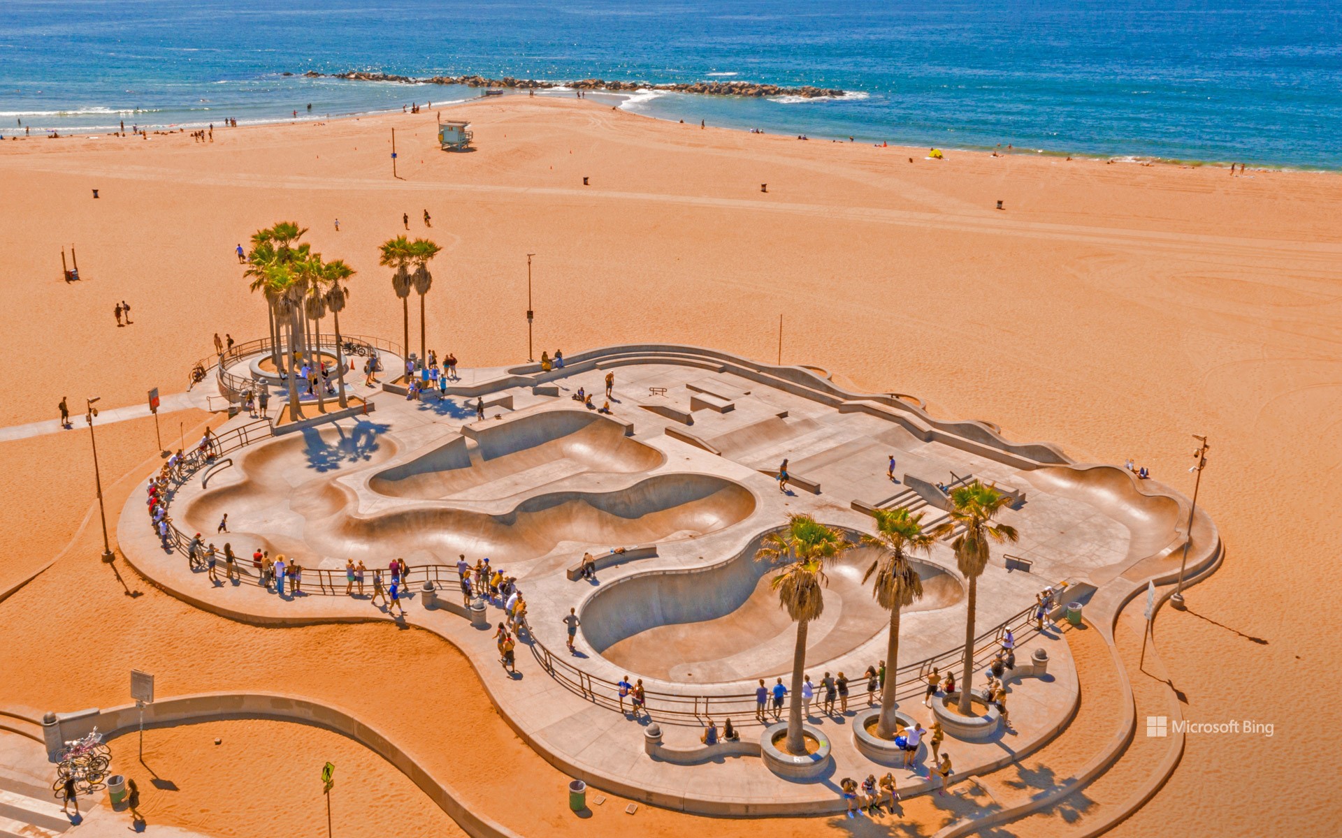 威尼斯海滩滑板公园鸟瞰图,洛杉矶
