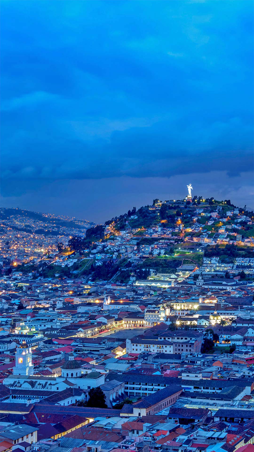 暮色中的面包山和老城区,厄瓜多尔基多