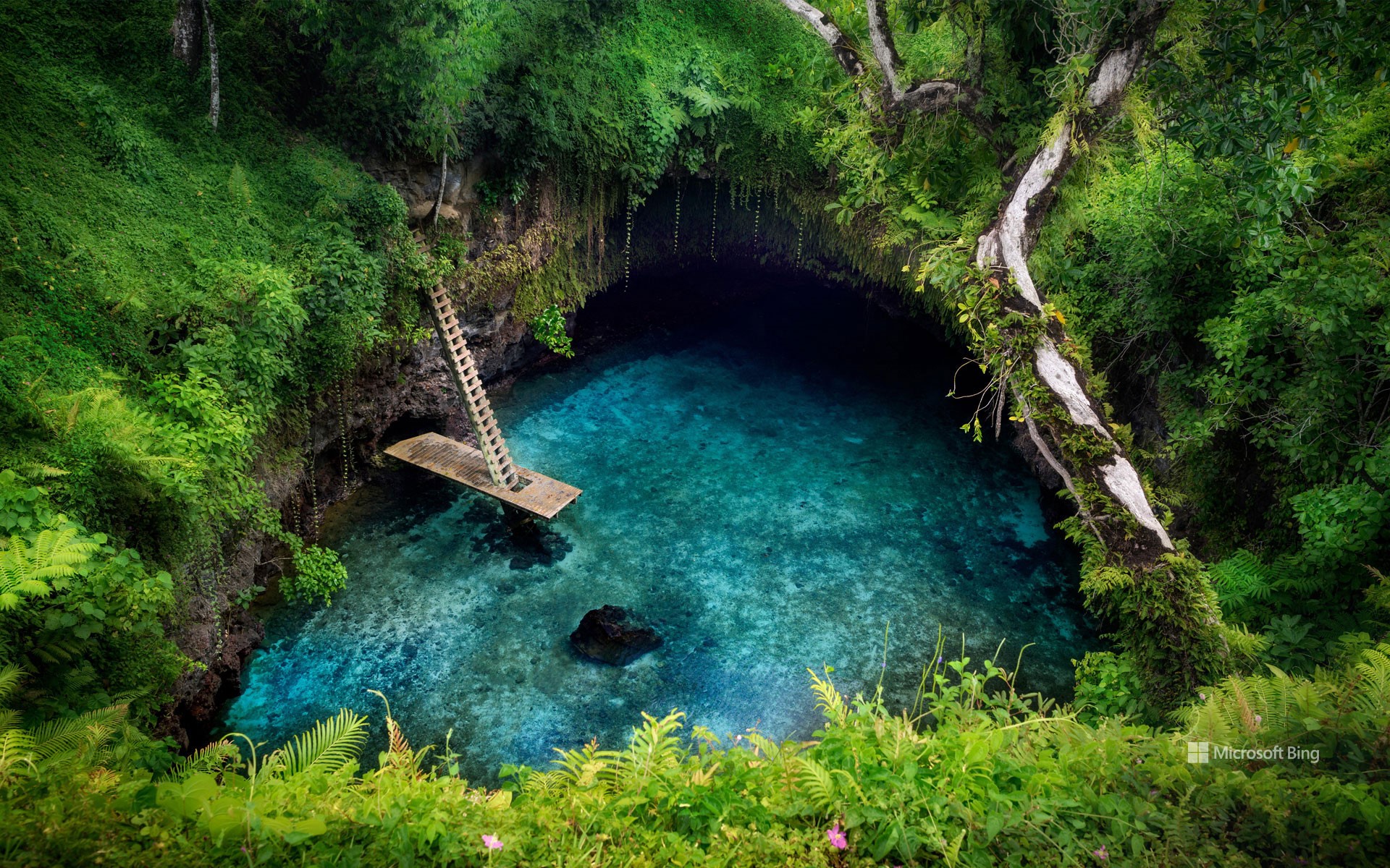 乌波卢岛上的托苏阿海沟是丛林中的天然咸水池。 这个看起来像陨石坠落的洞是由熔岩场的侵蚀造成的。 它被玄武岩悬崖所环绕,深27米。 在游泳池的西侧,有一个通往大海的沿海洞穴。