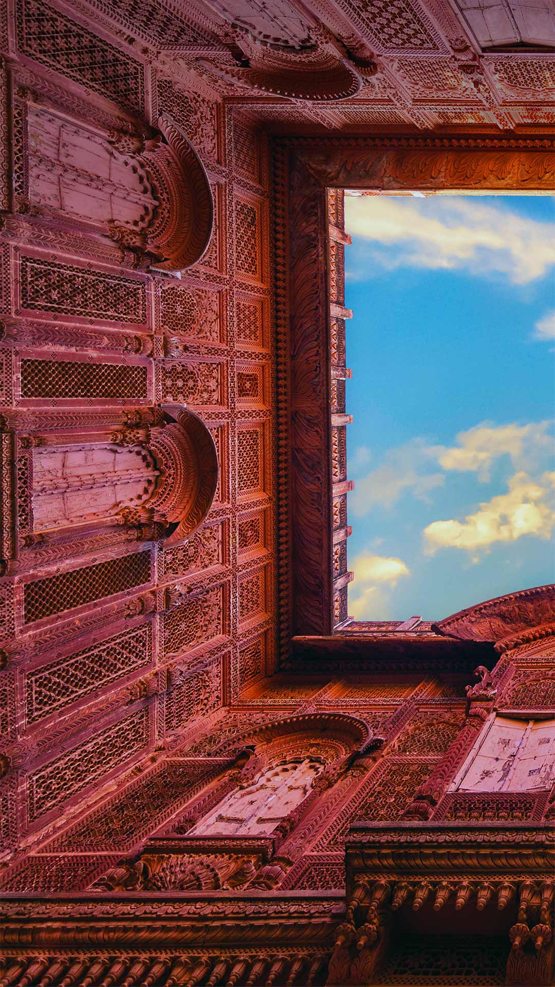 今天是印度的共和国纪念日。就像蓝色的天空被画进了画框一样,这是在印度的梅赫兰城堡中庭看到的天空。这座堡垒建于15世纪,建在可以俯瞰古都焦特布尔的岩石山上,直到印度从英国独立为止,历代的马哈拉贾都是它的居城,是这座城市的象征。