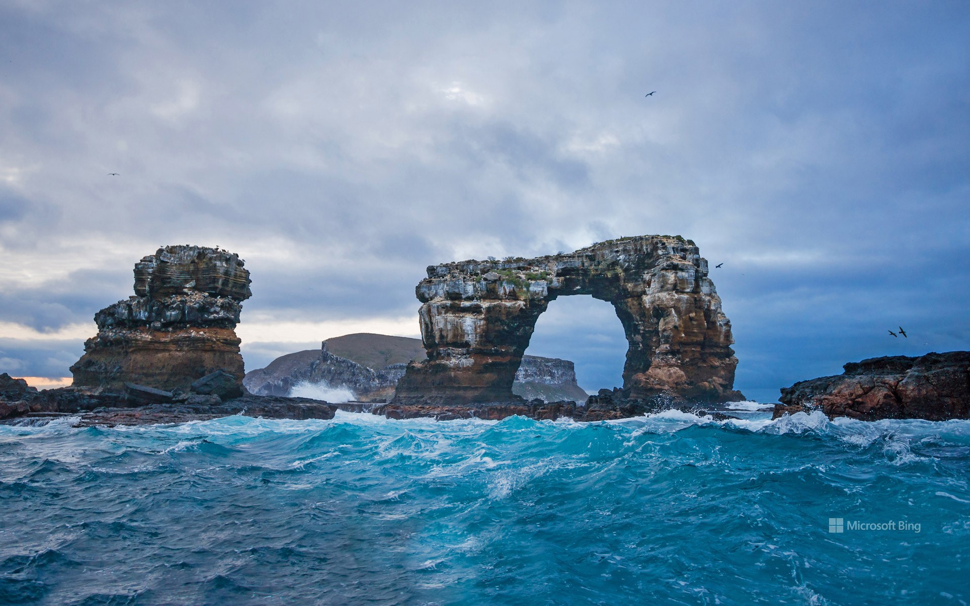 海洋拱门遍布世界各地,通常位于悬崖和海水的交界处。悬崖底部的岩石被海浪侵蚀,顶部岩石被保留,便形成了拱门形状。达尔文拱门位于达尔文岛东南部,属于太平洋加拉帕戈斯群岛的一部分。