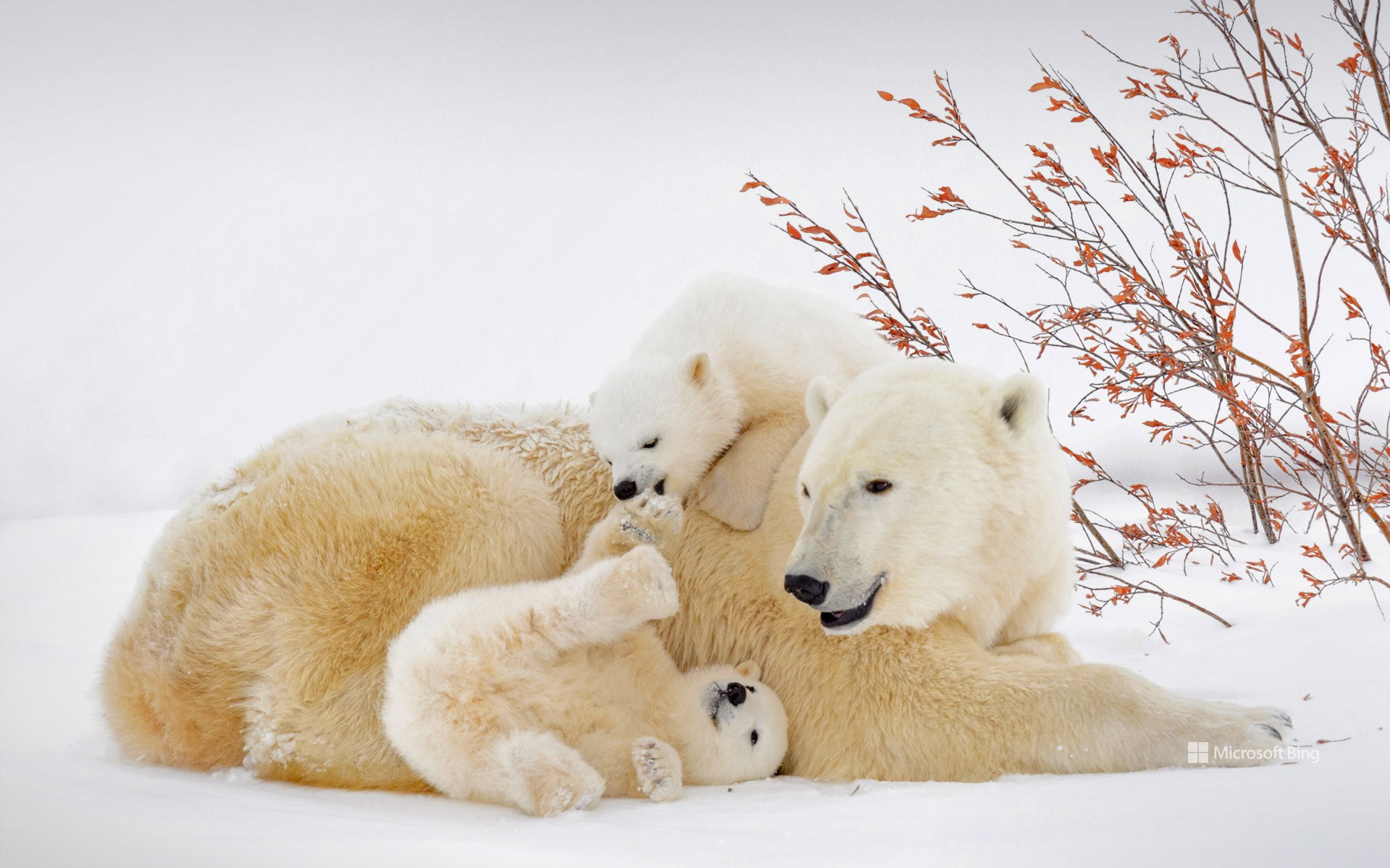 这只母熊和它的幼崽正在加拿大马尼托巴省的瓦普斯克国家公园里享受春天,那里的北极苔原变成了北方森林。瓦普斯克是世界上最大的北极熊筑巢区之一,它对大约1000只北极熊的生存至关重要,这些北极熊在哈德逊湾西部游荡。