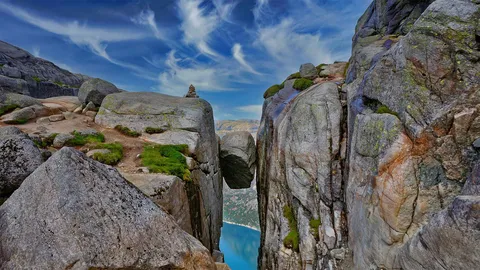 如果您有强大的勇气,您一定会喜欢这张照片上看起来非常不稳定的谢拉格伯顿石(奇迹之岩)。游客们只需爬上挪威西南海岸的谢格拉山,便有机会爬上这个岩石,并为子孙后代拍摄一张彰显他们勇气的照片。事实上,谢拉格伯顿石十分受欢迎,以至于可能需要排队一小时才能轮到您爬上去,这也给了您足够的时间去紧张和思考。