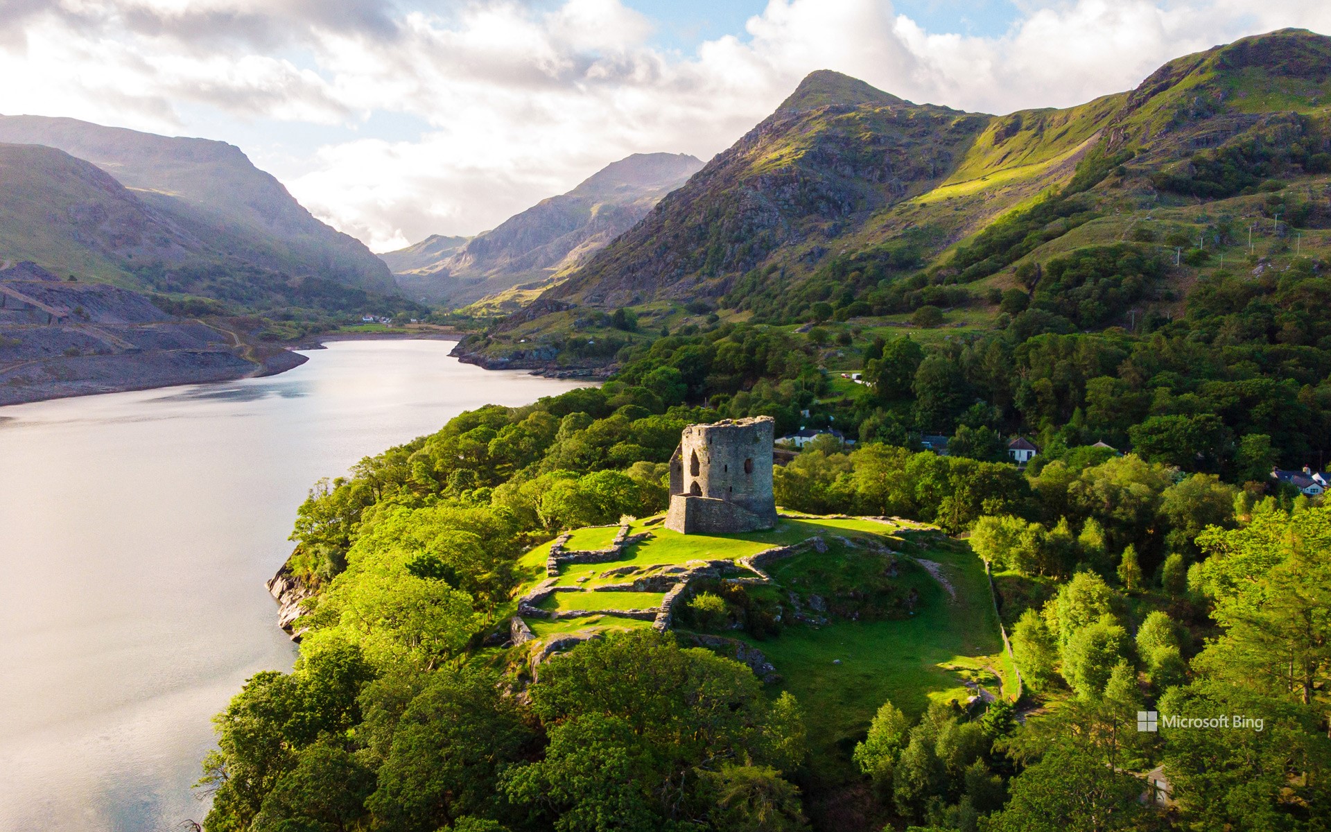 欢迎来到兰贝里斯山口,这里是穿过威尔士山脉的斯诺登山和吉德劳山的必经之地,也是双子湖(林恩·佩里斯湖和林恩·帕达恩湖)的所在地。矗立在湖边的是多尔巴达恩城堡的遗址。中世纪时,这座城堡曾是威尔士王子的据点,也是18世纪风景画家最喜欢的绘画对象。如今,它的外墙只剩下最底层的地基,但宏伟的50英尺(15.2米)高的圆形堡垒仍屹立不倒,成为了这个偏远山隘关口的唯一守护者。