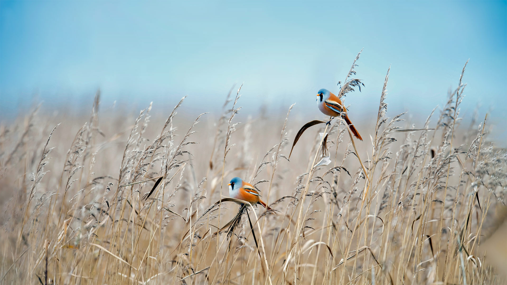 弗莱福兰省遍布着沼泽,是这些文须雀筑巢的理想之地。文须雀有时被称胡须山雀,因为它们与长尾山雀非常相似,但它们不但不是山雀,而且也没有真正的胡须(不过雄性文须雀的面部髭纹确实比较像小胡子)。他们是一种独特的鸣禽,是文须雀科家族的唯一成员。它们分布在欧亚大陆。