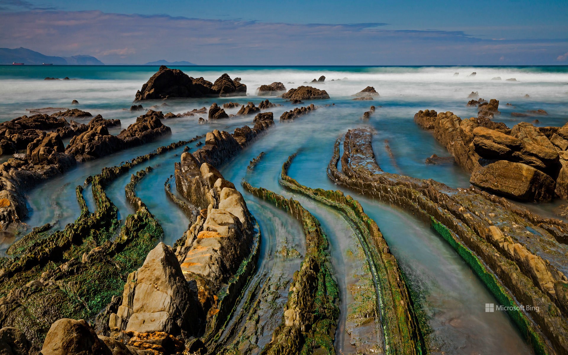 西班牙北部巴斯克海岸比斯开湾边,这些没入海水的龙尾状结构,是地球上最独特和最神奇的地质构造之一。这里是地质学家的仙境,也是奇石爱好者的仙境。在巴斯克海岸地质公园导游的带领下,游客可以在这里发现6000万年不间断的地质历史。