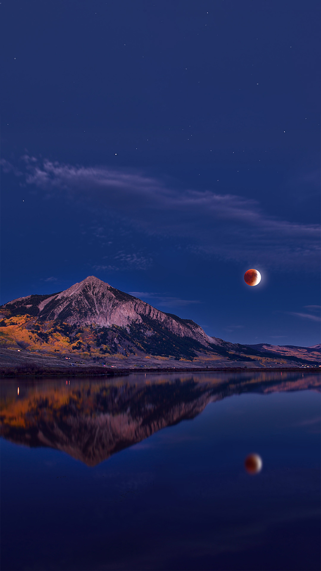 这张照片拍摄地位于克雷斯特德比特山,记录了纯净夜空中的月食现象。克雷斯特德比特山是北美落基山脉麋鹿山脉的一座著名山峰。这座12,168英尺(3,709 米)的山峰位于美国科罗拉多州甘尼森县 Crested Butte镇附近的甘尼森国家森林。甘尼森国家森林是一座美国国家森林,占地2612.71平方英里,它与白河和圣伊莎贝尔国家森林共享Maroon Bells-Snowmass荒野,与圣伊莎贝尔国家森林共享 Collegiate Peaks荒野地区。