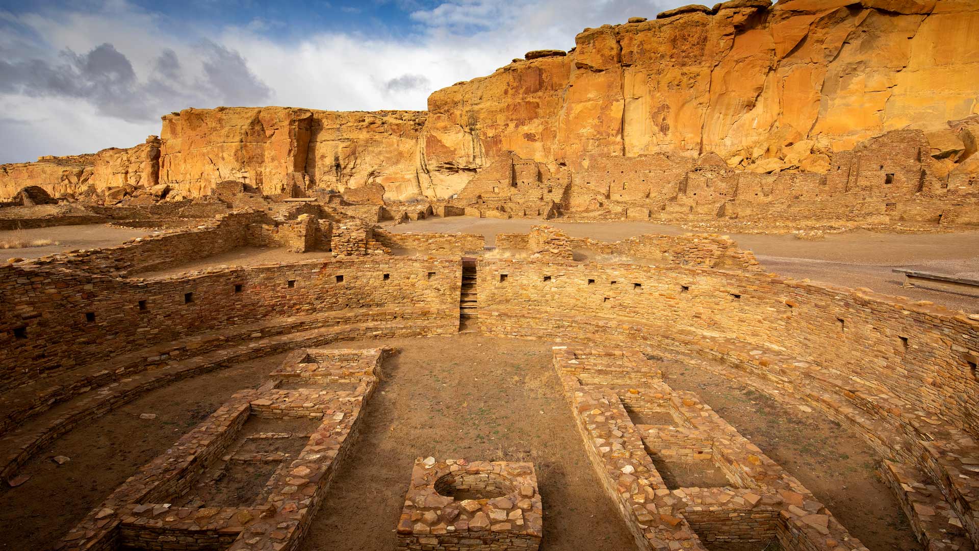 数百年来,新墨西哥州的查科峡谷一直是普韦布洛人祖先的主要文化中心,他们的族群在这里扎根并繁荣起来。然而,由于高地沙漠冬季漫长、少雨且生长季节短暂,在这里生活并非易事。尽管面临这些挑战,普韦布洛人还是找到了在这个条件艰苦的地方繁荣发展的方法。今天,查科文化国家历史公园让我们得以窥见古老的普韦布洛人的文化、传统和价值观。该遗址是史前时代举办典礼的公共建筑的所在地,建筑风格具有普韦布洛文化的独特特征。这些建筑仿照古代的悬崖民居,由石灰石块或土坯砖建造而成。