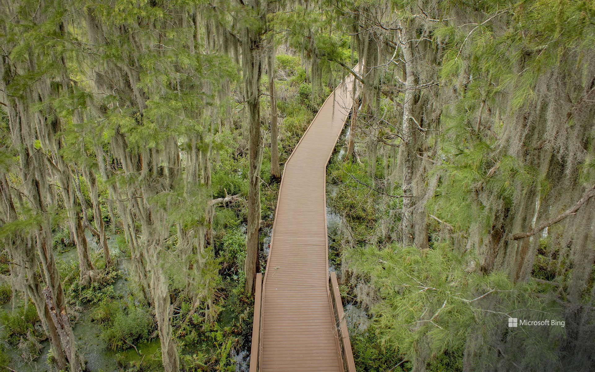奥克弗诺基沼泽木板路上的西班牙苔藓,佐治亚州,美国 (© Emmer Photo/Alamy)